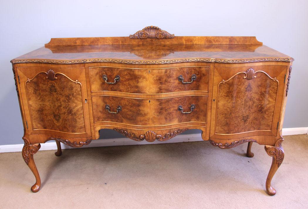 Antique Quality Burr Walnut Serpentine Front Sideboard