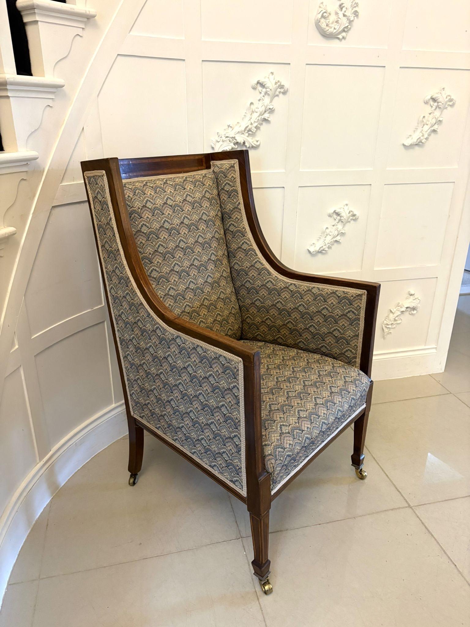 Antique Quality Edwardian Mahogany Bergère Style Wing Armchair