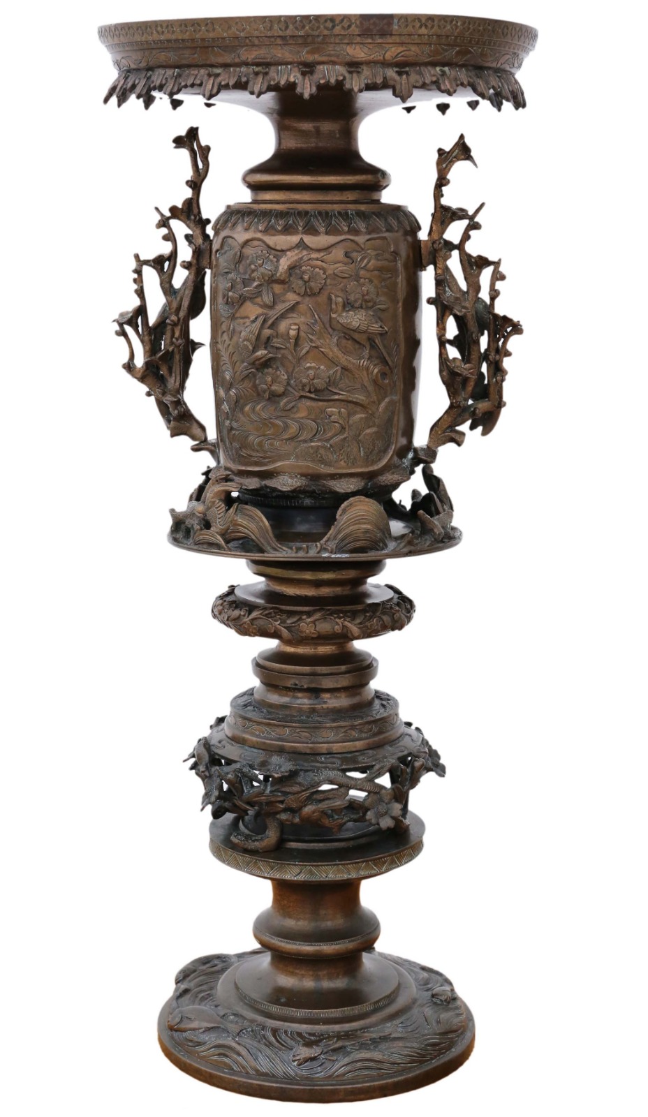 Antique Quality Japanese Tall Decorative Bronze Vase Display Stand Meiji Period