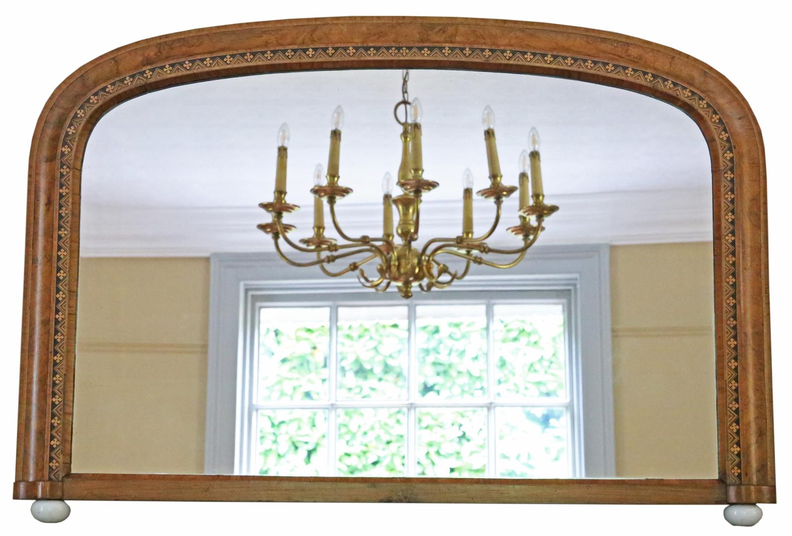 Antique Quality Large Quality Parquetry Inlaid Burr Walnut Overmantle or Wall Mirror c.1900