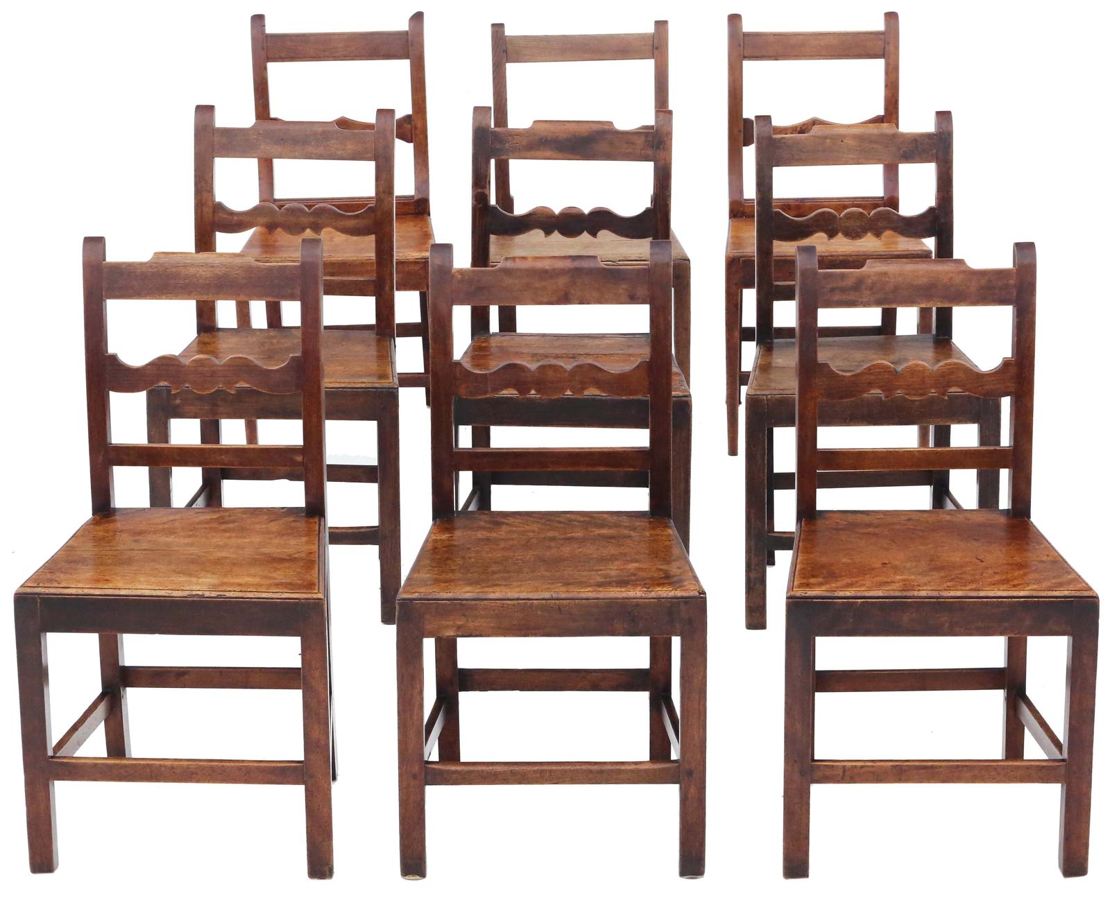 Antique Quality Matched Set of 9 8 6 19th Century Elm Kitchen Dining Chairs