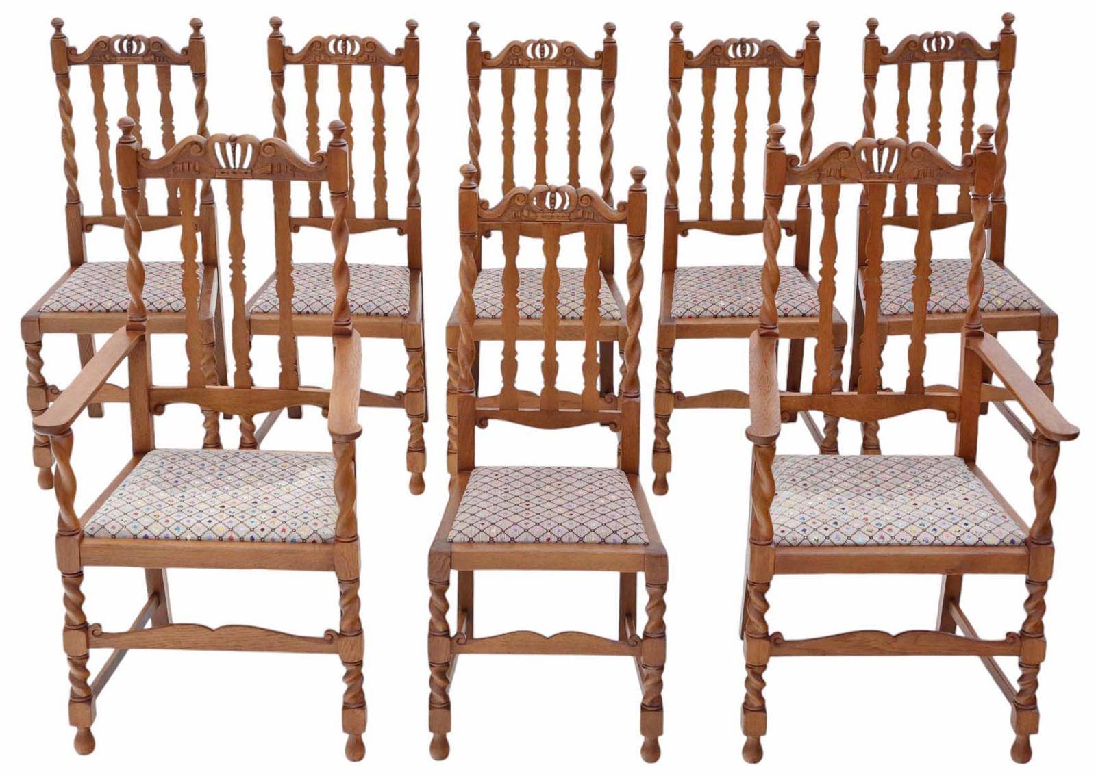 Antique Quality Set of 8 (6 Plus 2) Twist Mahogany Dining Chairs Jacobean Revival c.1920 (1 of 10)