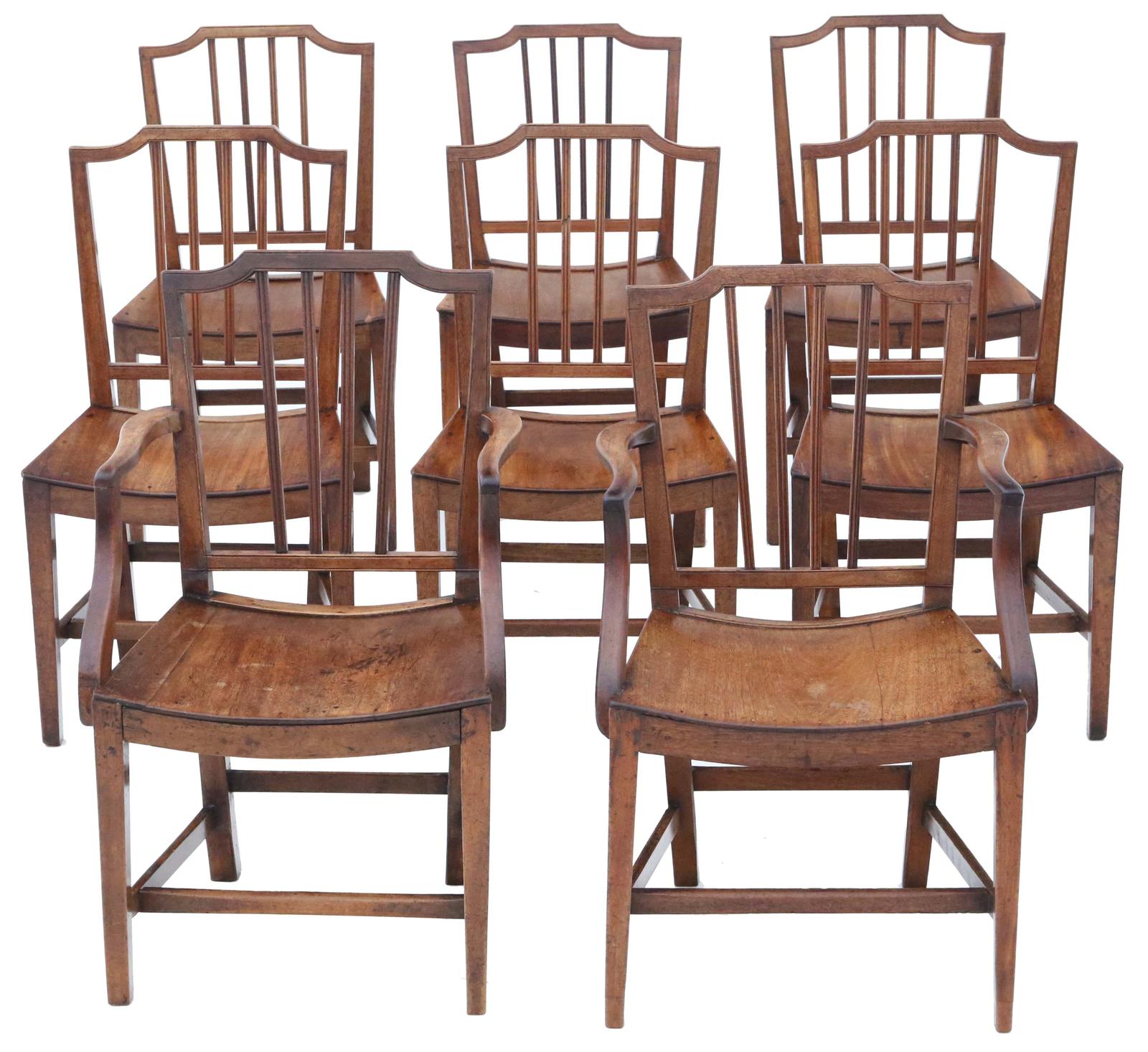Antique Quality Set of 8 (6+2) Early 19th Century Mahogany Elm Kitchen Dining Chairs