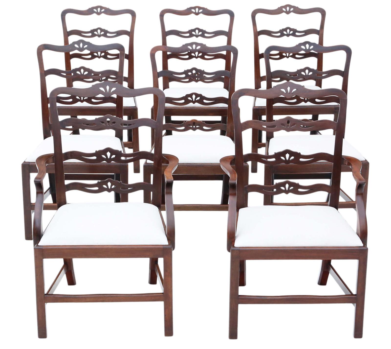 Antique Quality Set of 8 (6+2) Mahogany Dining Chairs 19th Century Ribbon Back