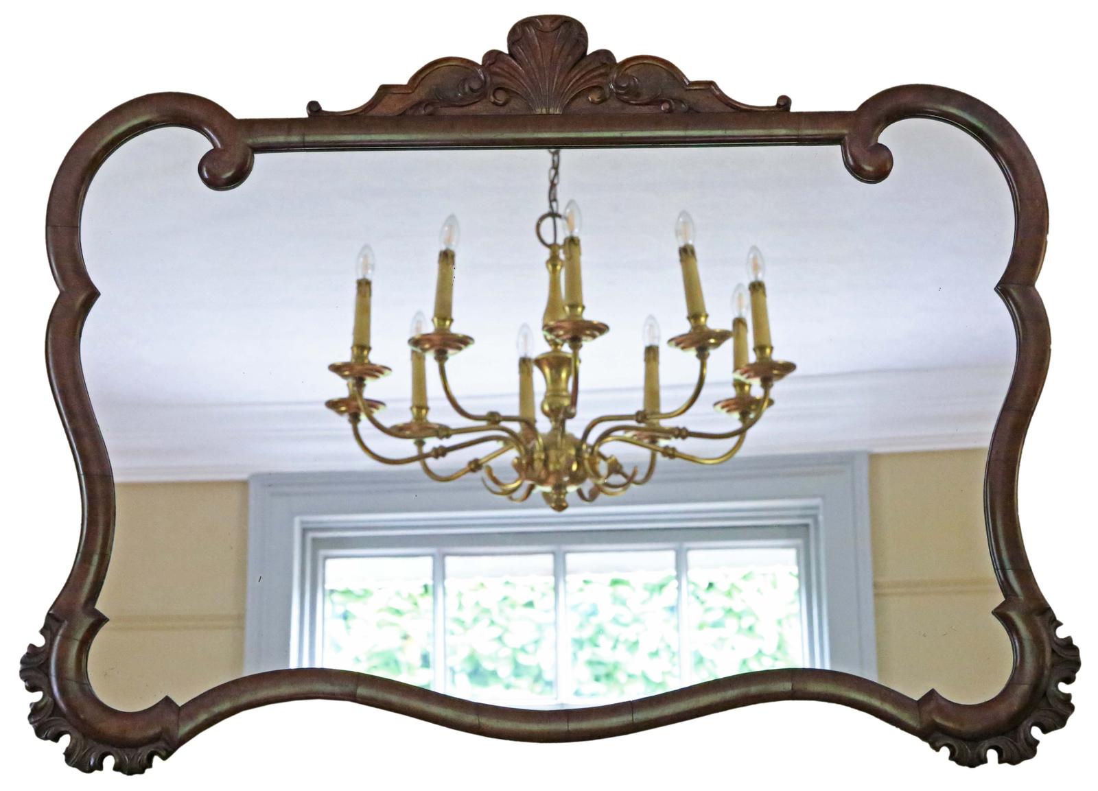 Antique Quality Shaped Large Quality Mahogany Overmantle or Wall Mirror c.1920