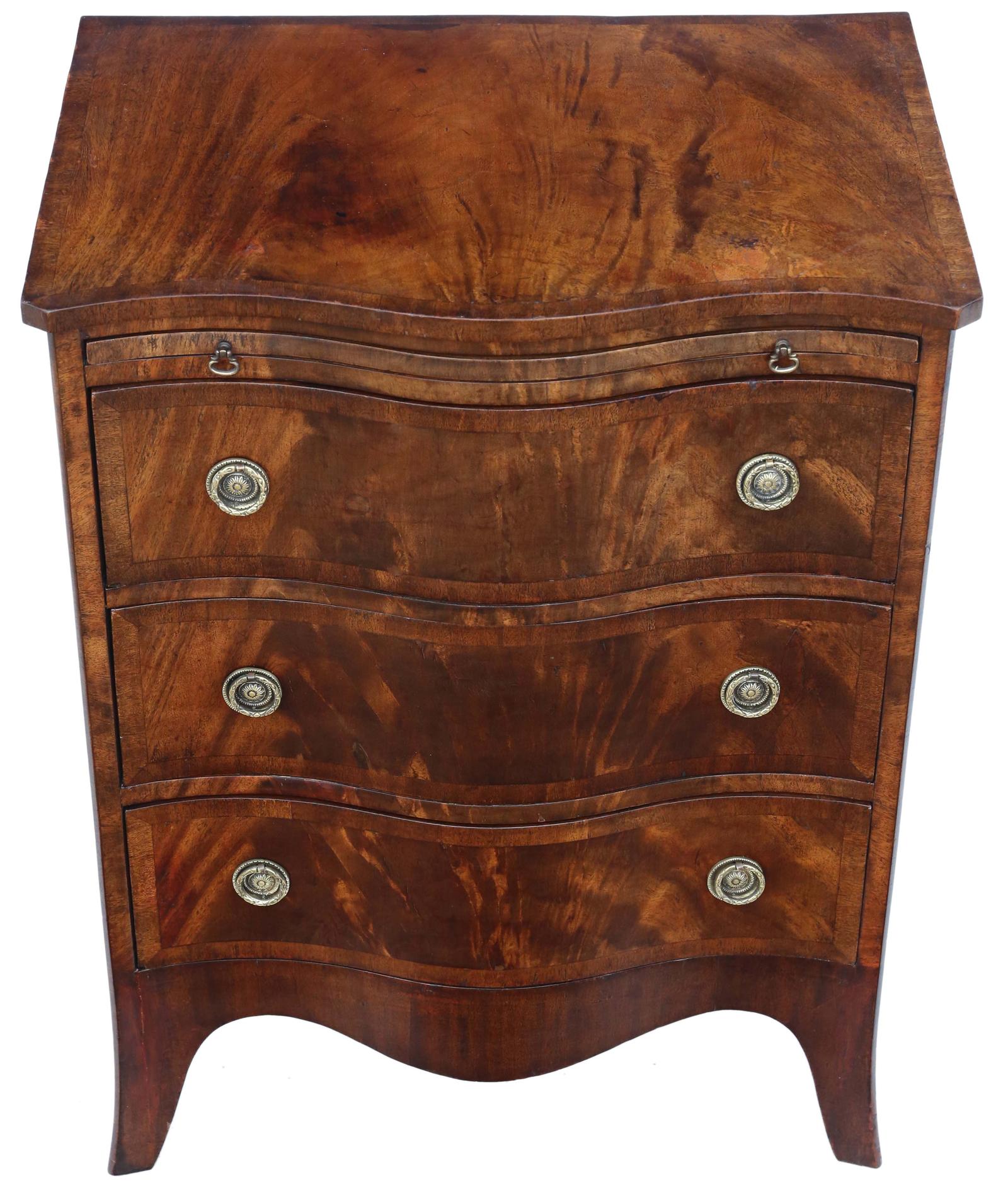 Antique Quality Small Georgian Revival Flame Mahogany Serpentine Front Chest of Drawers c.1900