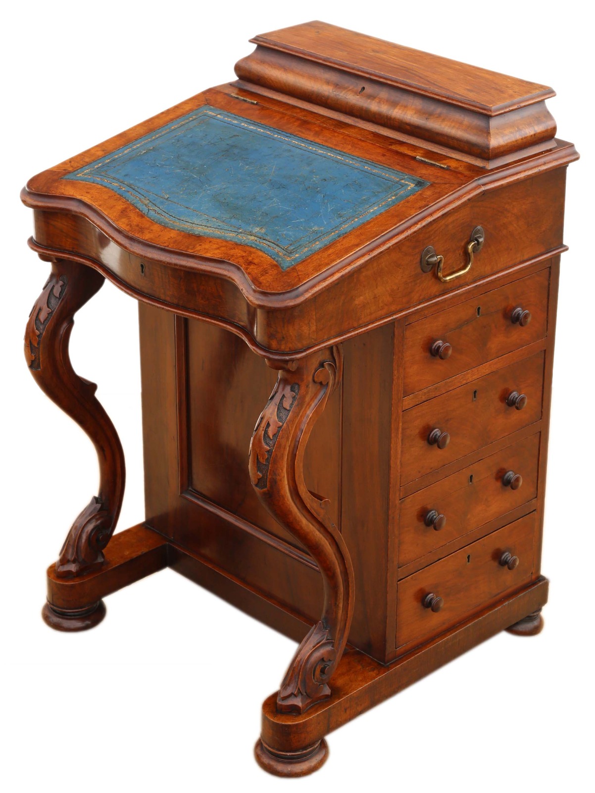 Antique Quality Victorian Figured Walnut Davenport Desk or Writing Table