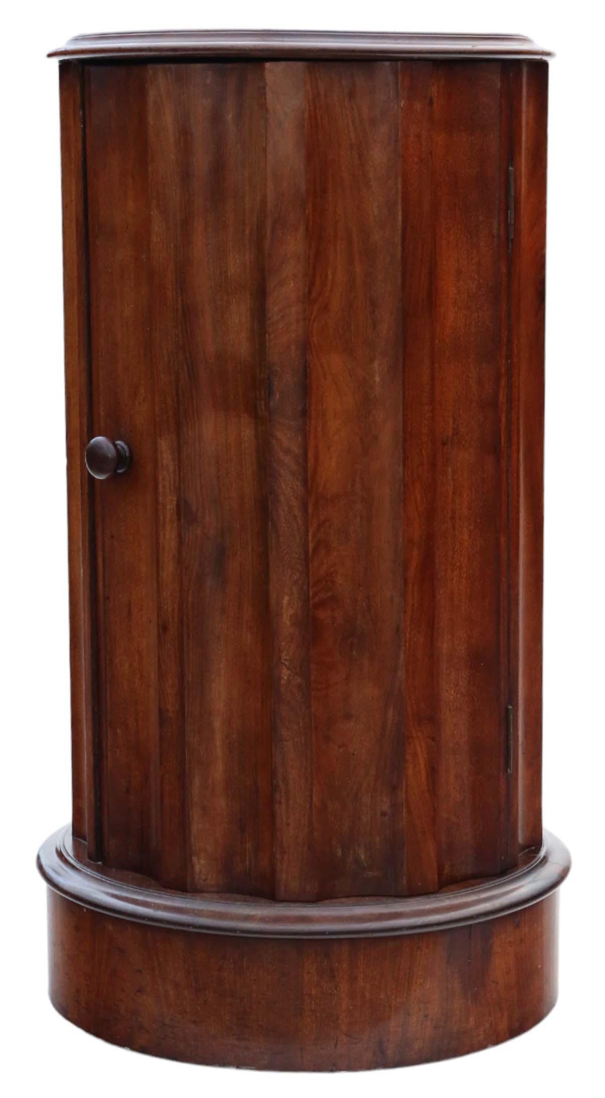 Antique Quality Victorian Mahogany Fluted Cylinder Bedside Table Cupboard Cabinet Stand