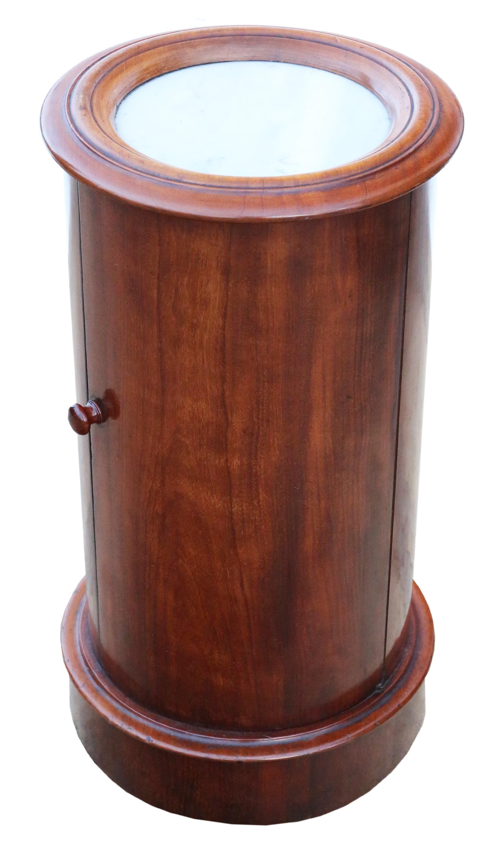 Antique Quality Victorian Mahogany Marble Cylinder Bedside Table Cupboard Cabinet Stand