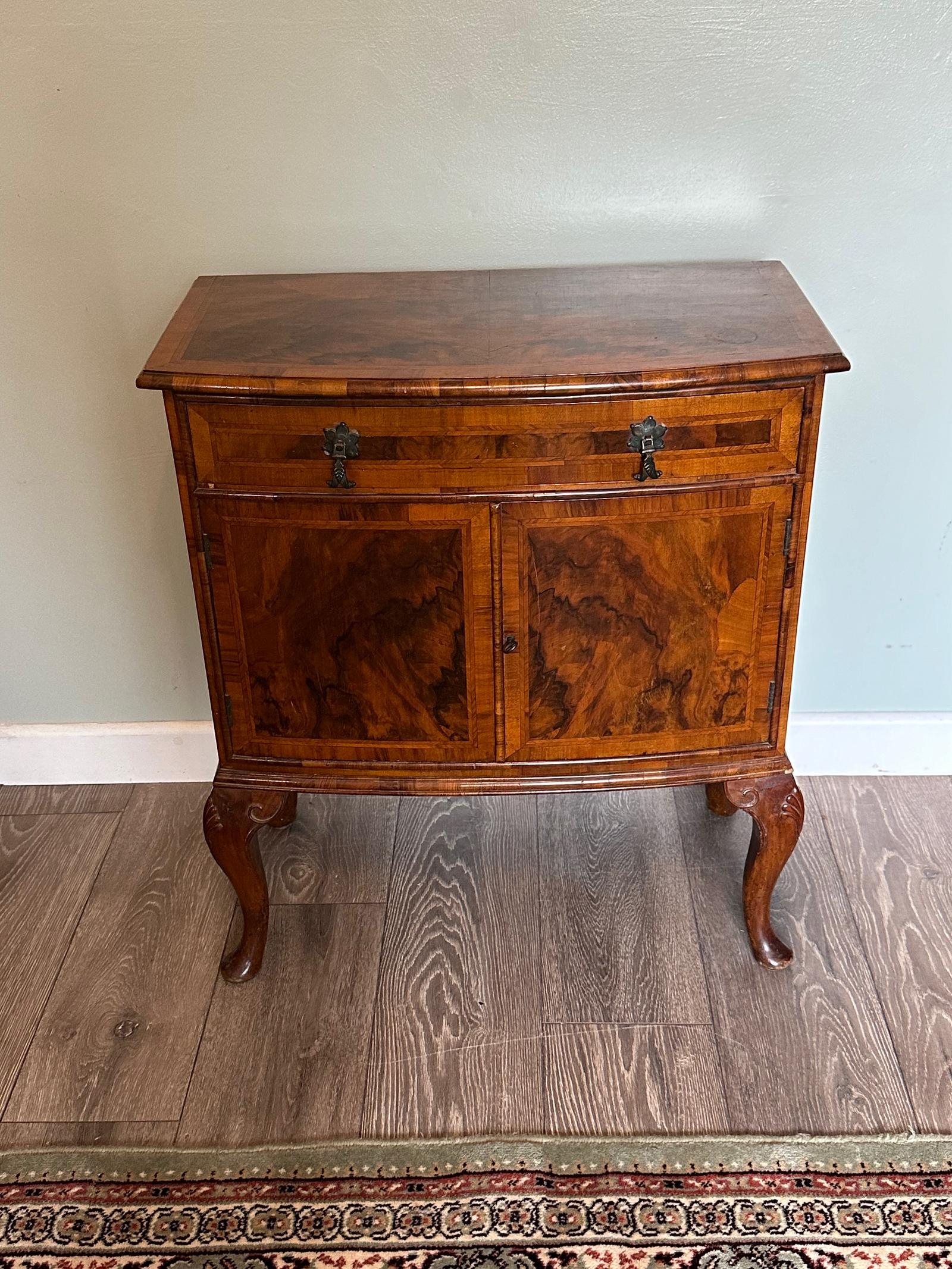 Antique Queen Anne Style Bow Front Burr Walnut Cupboard c.1880