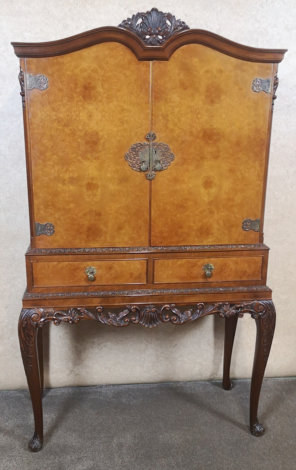 Antique Queen Anne Style Burr Walnut Cocktail Cabinet (1 of 17)