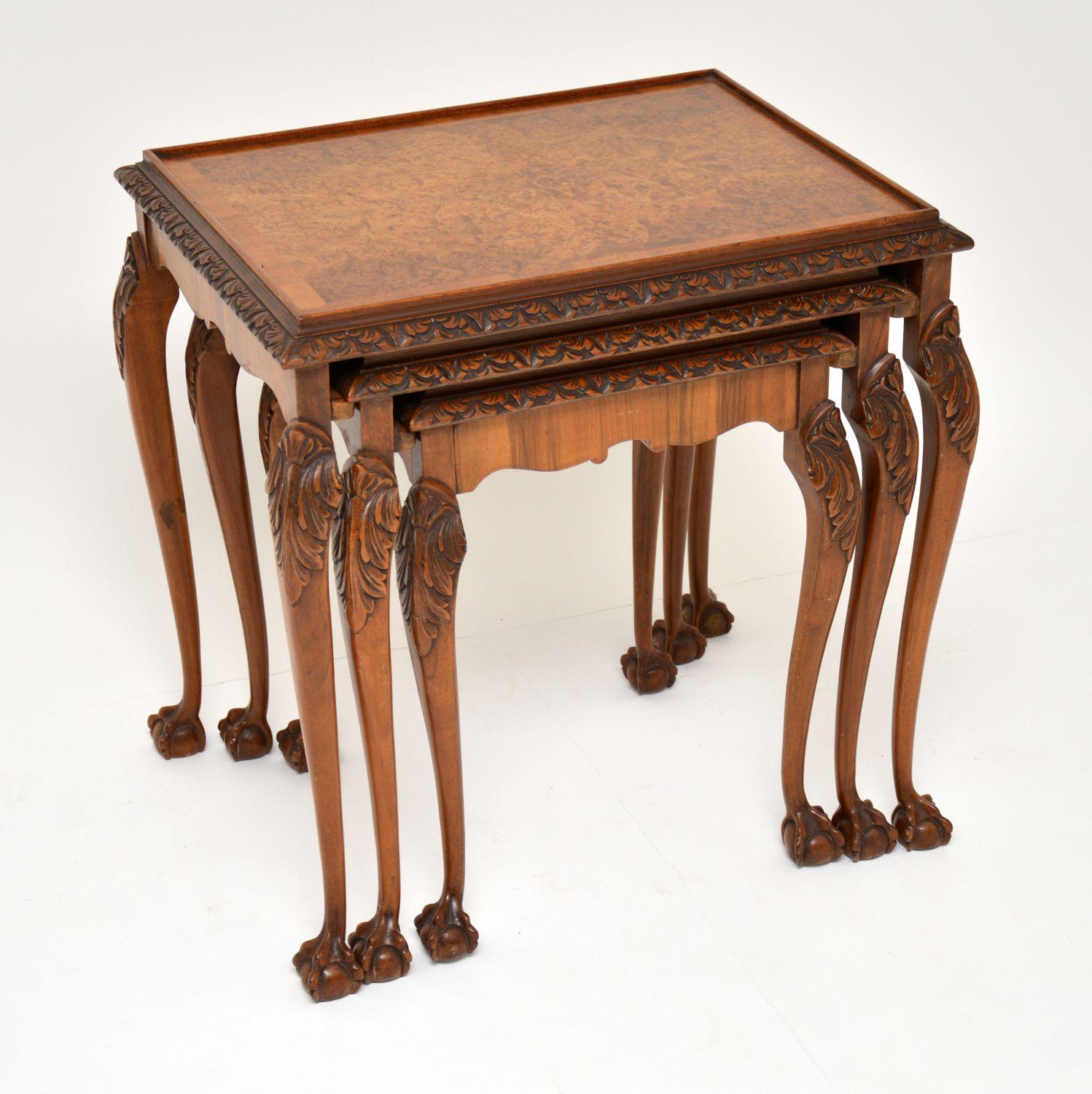 Antique Queen Anne Style Burr Walnut Nest of Tables (1 of 9)