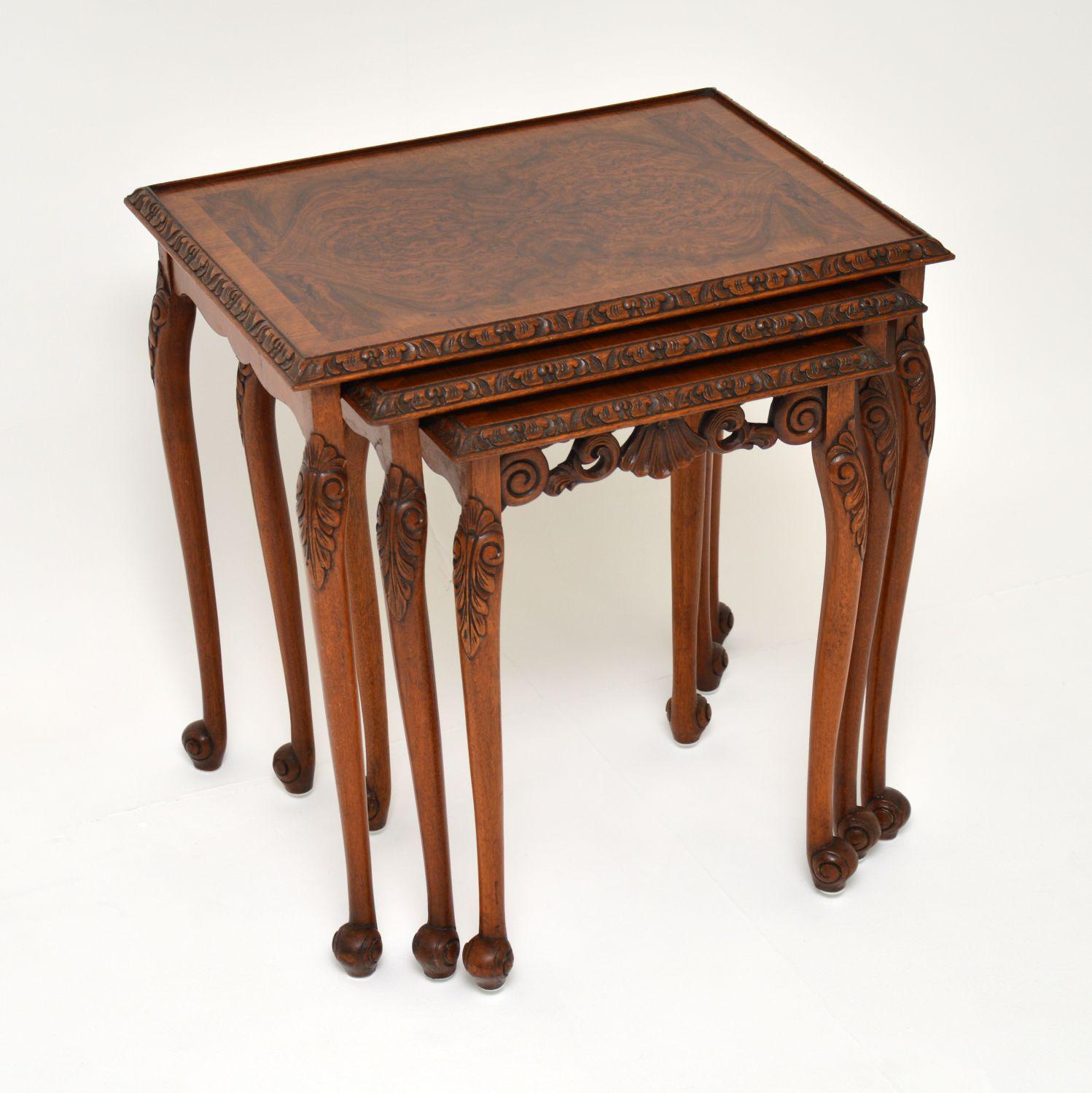 Antique Queen  Anne Style Burr Walnut Nest of Tables (1 of 9)