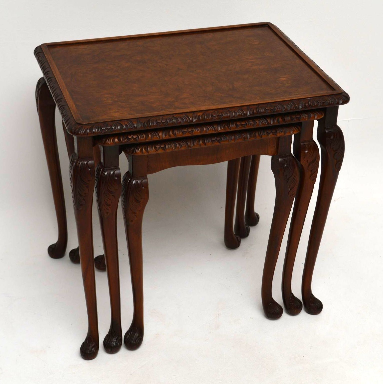 Antique Queen Anne Style Burr Walnut Nest of Tables (1 of 1)