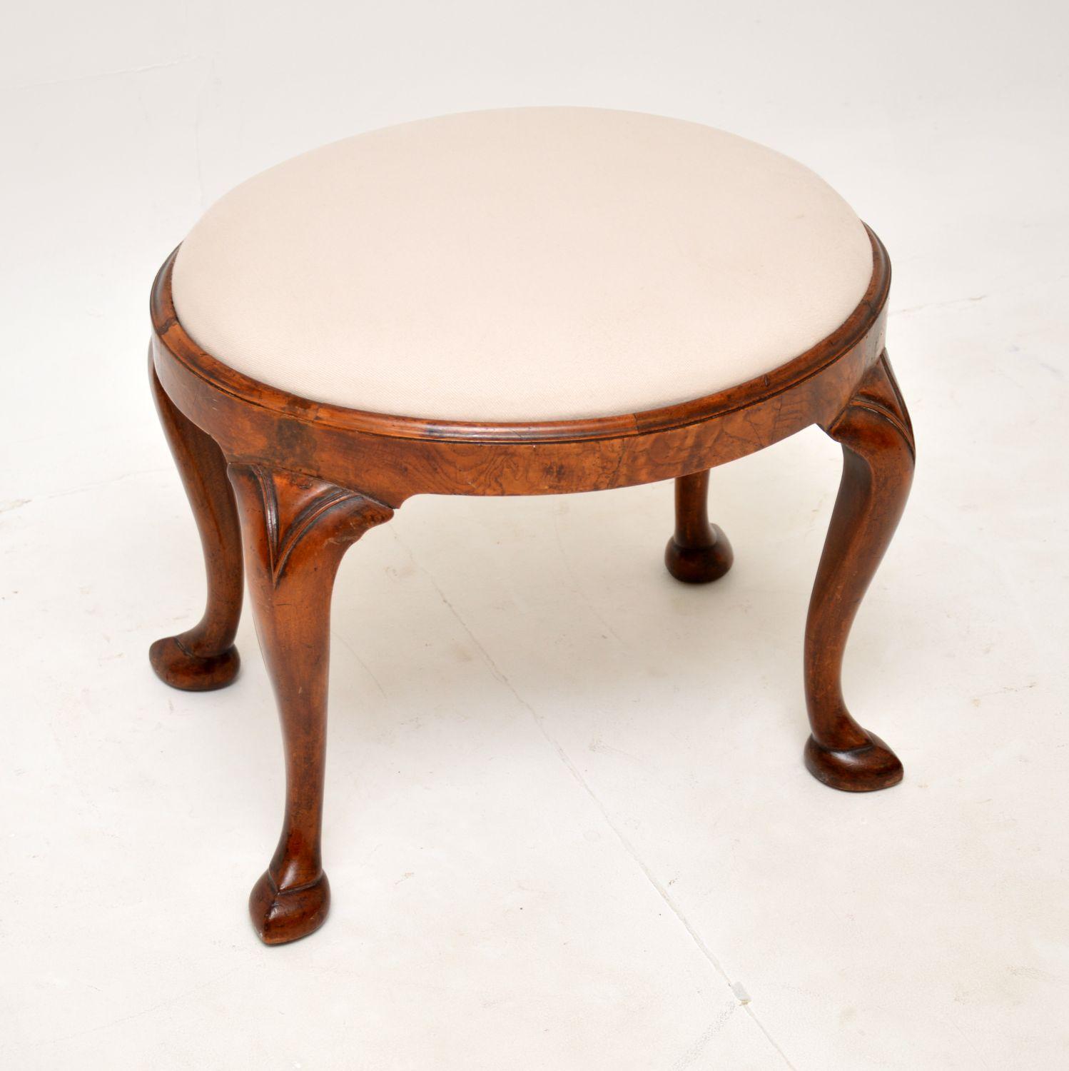 Antique Queen Anne Style Burr Walnut Stool (1 of 9)