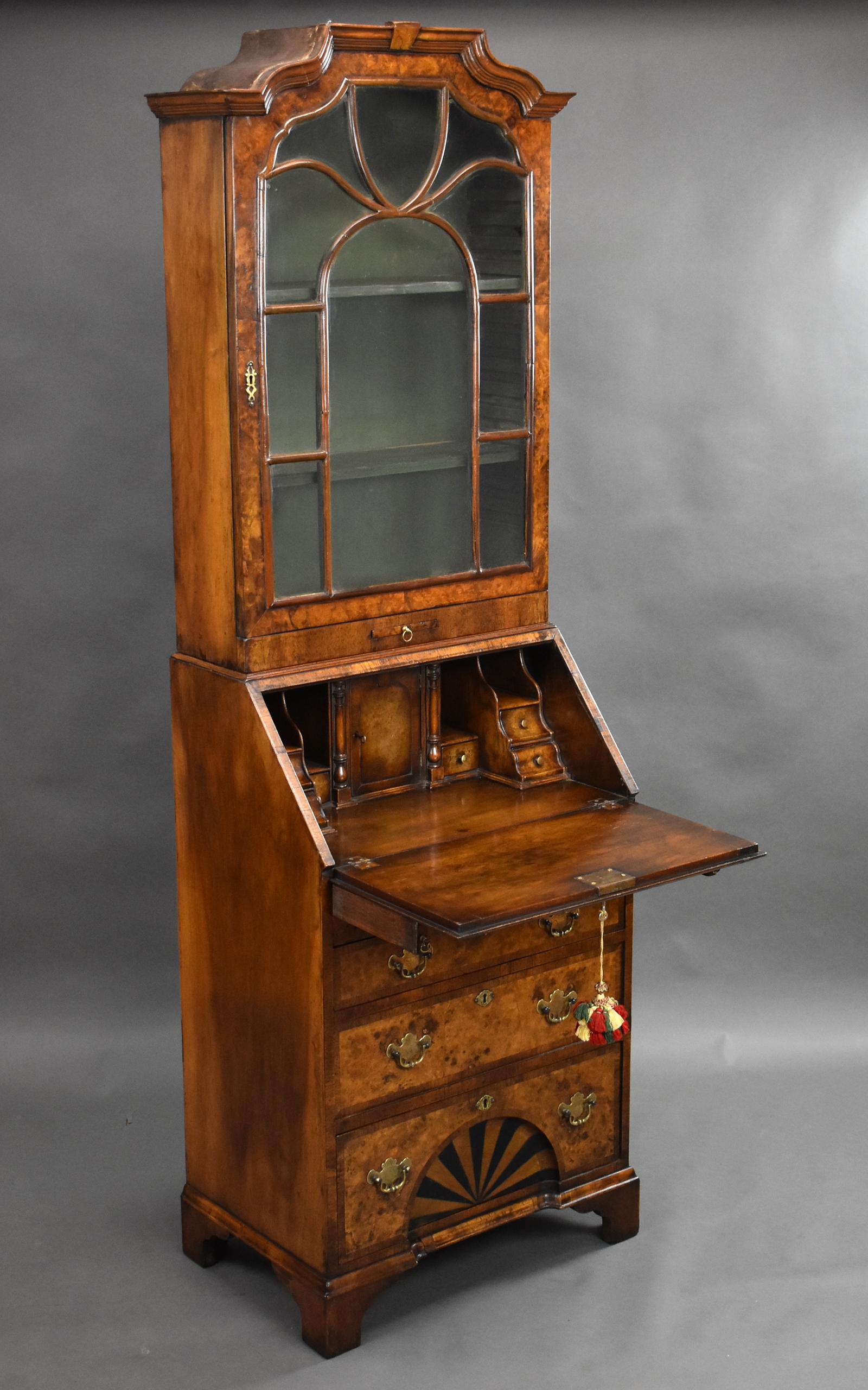 Antique Queen Anne Style Walnut Bureau Bookcase