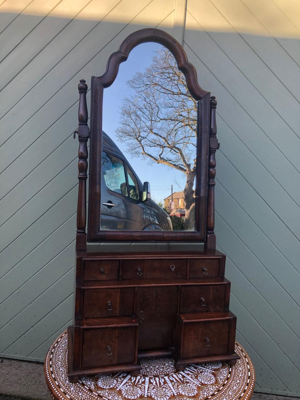 Antique Queen Anne Style Walnut Dressing Table Mirror