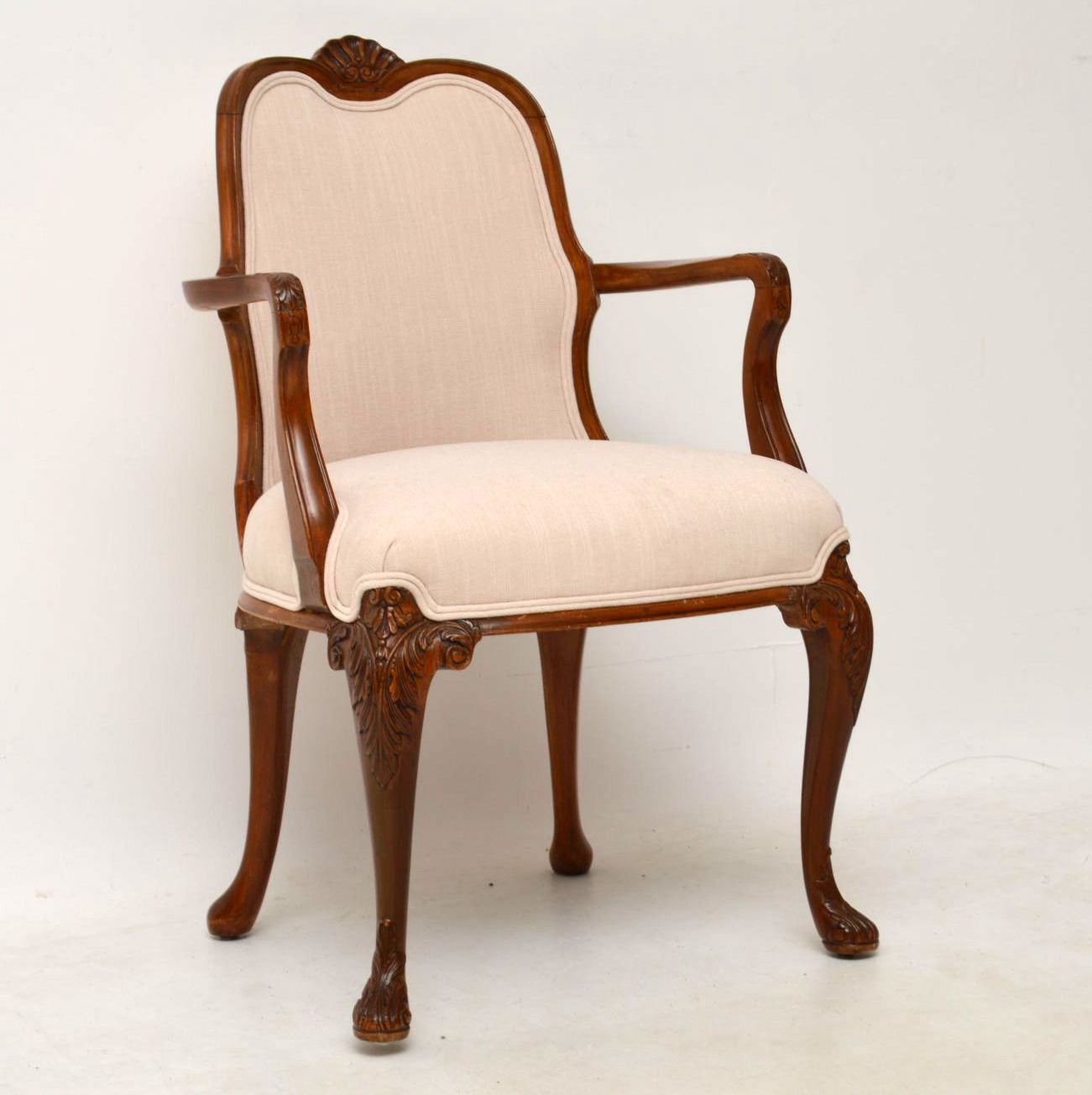 Antique Queen Anne Walnut Salon Armchair c.1910