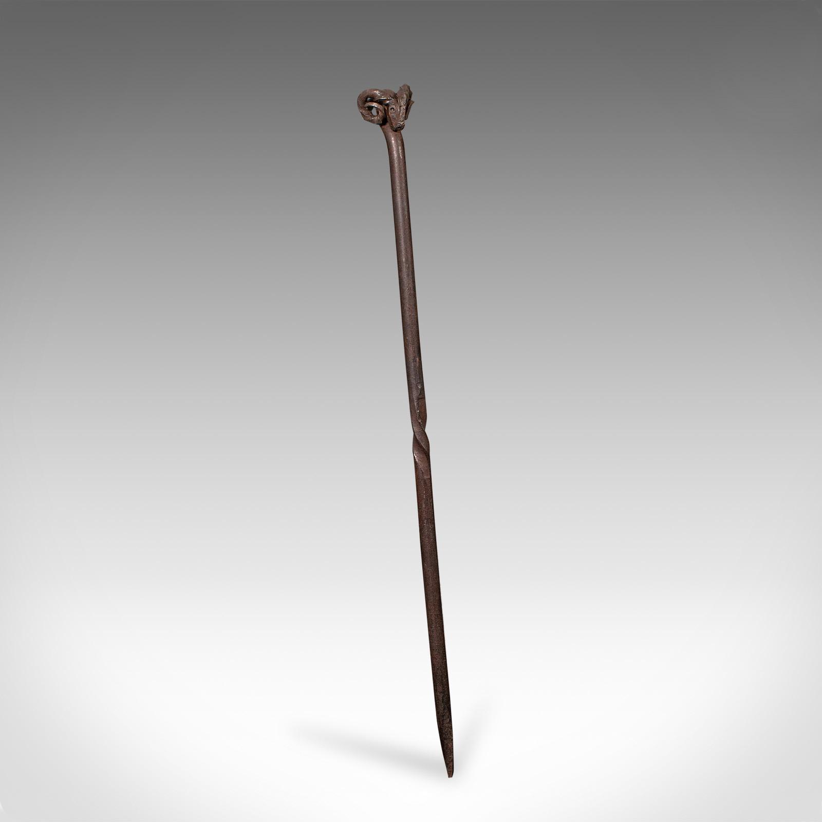 Antique Ram's Head Fire Poker, English Wrought Iron, Aries, Fireplace - Edwardian c.1910