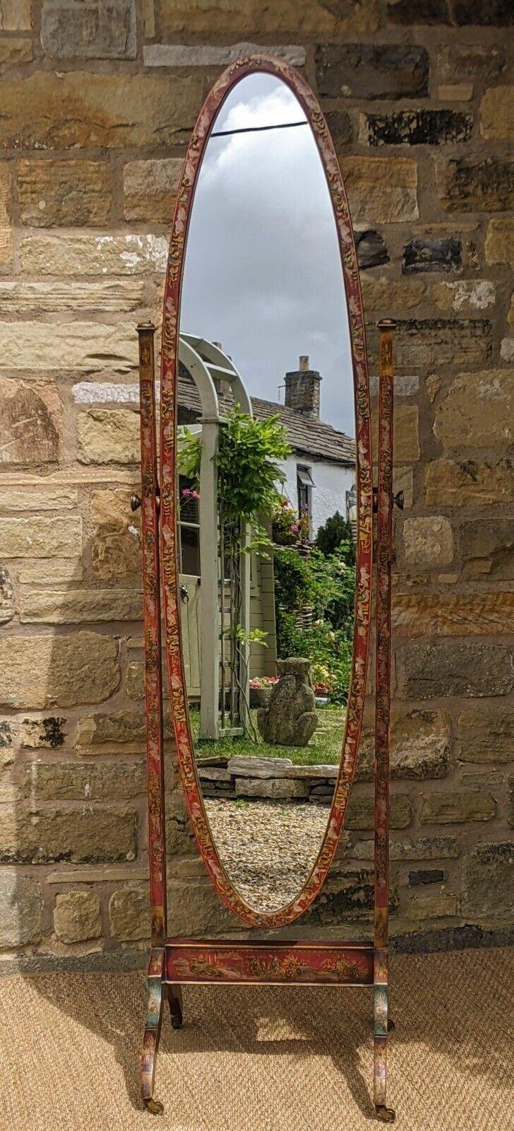 Antique Red Chinoiserie Cheval Mirror (1 of 9)