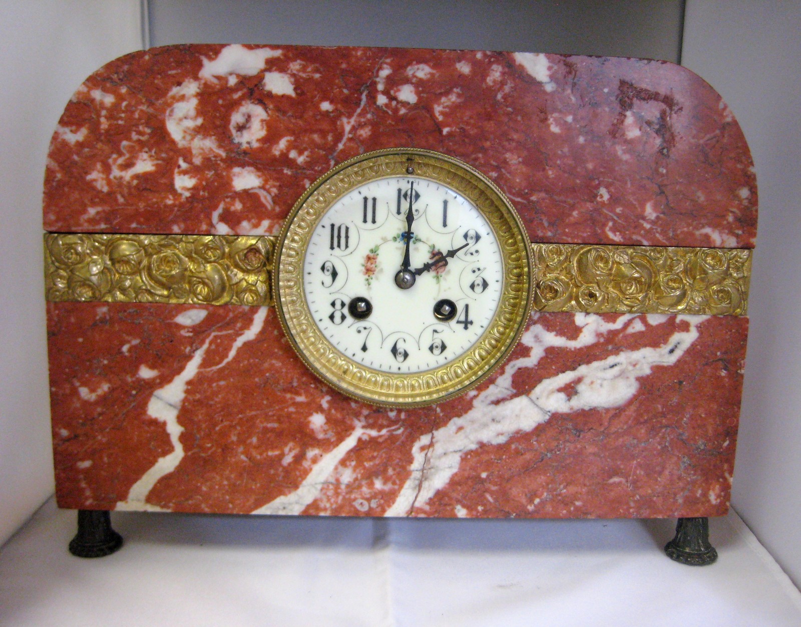 Antique Red Marble Clock with Hour Repeater, Bell, 1880