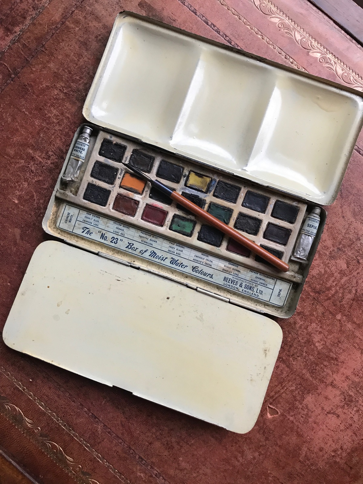 Antique Reeves No 23 Paintbox "Box of Moist Watercolours"