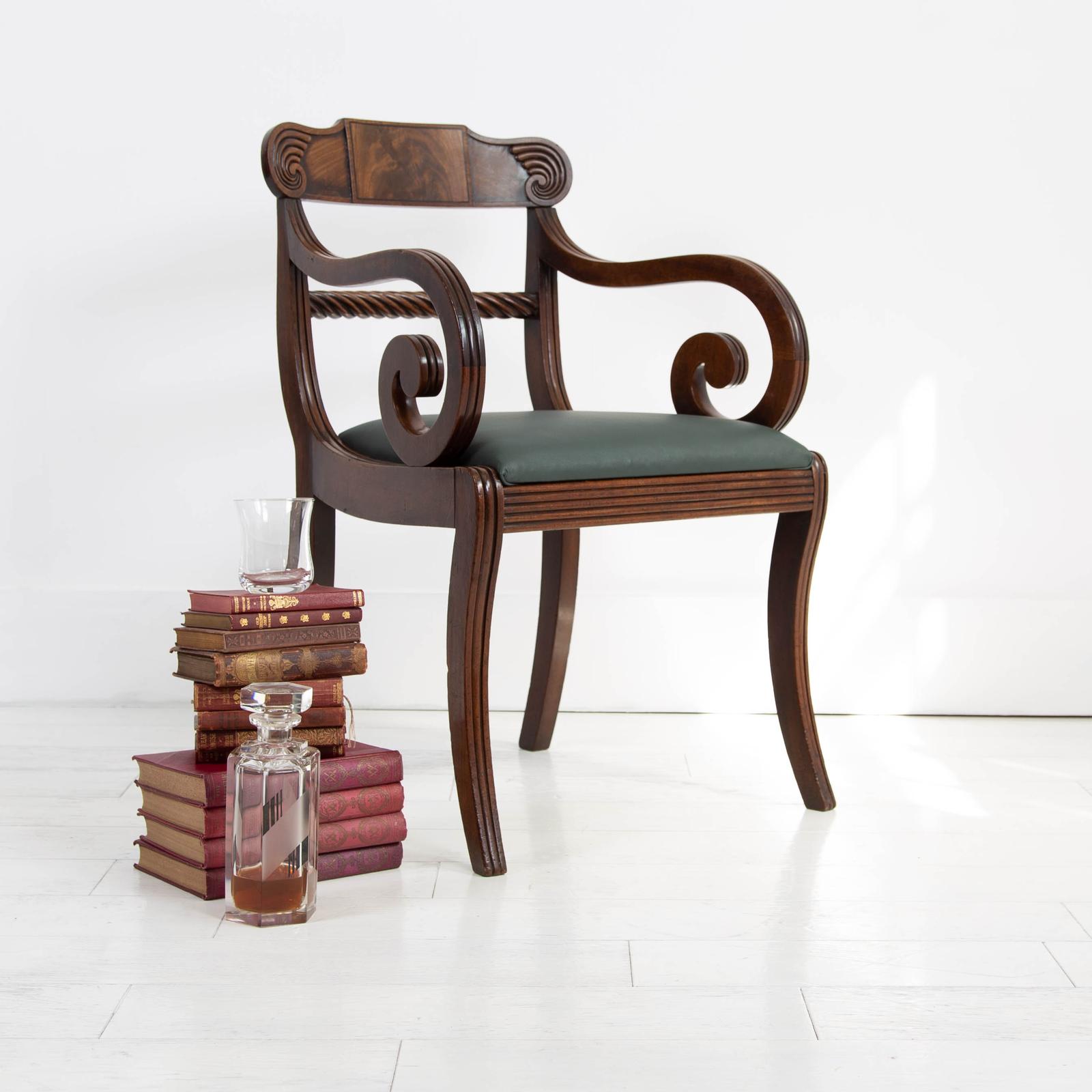 Antique Regency Armchair Carver Chair New Leather Seat (1 of 11)