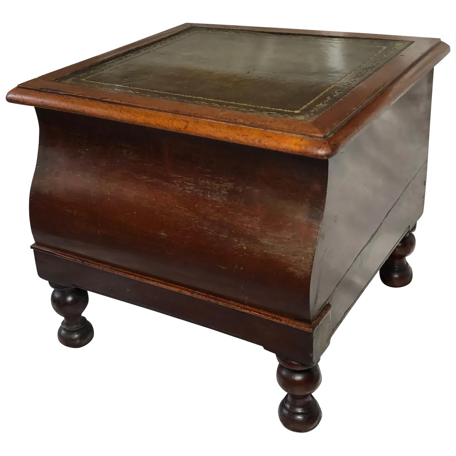 Antique Regency Early 19th Century Library Single Step Green Leather Top Stand