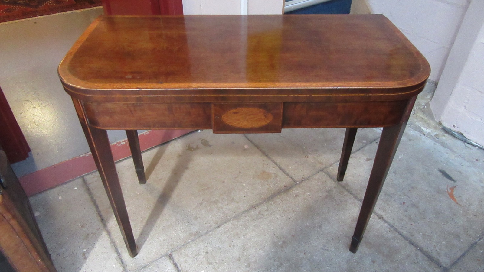 Antique Regency Inlaid Mahogany Fold Over Tea Table