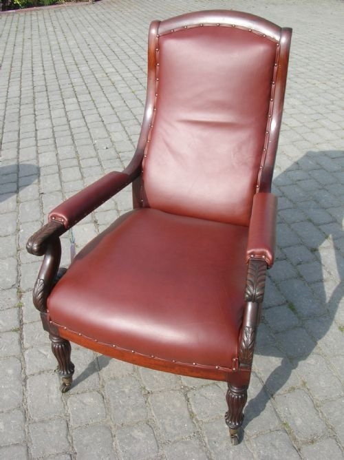 Antique Regency Mahogany Framed Leather Upholstered Library Reading Easy Occasional Gillows Design Armchair
