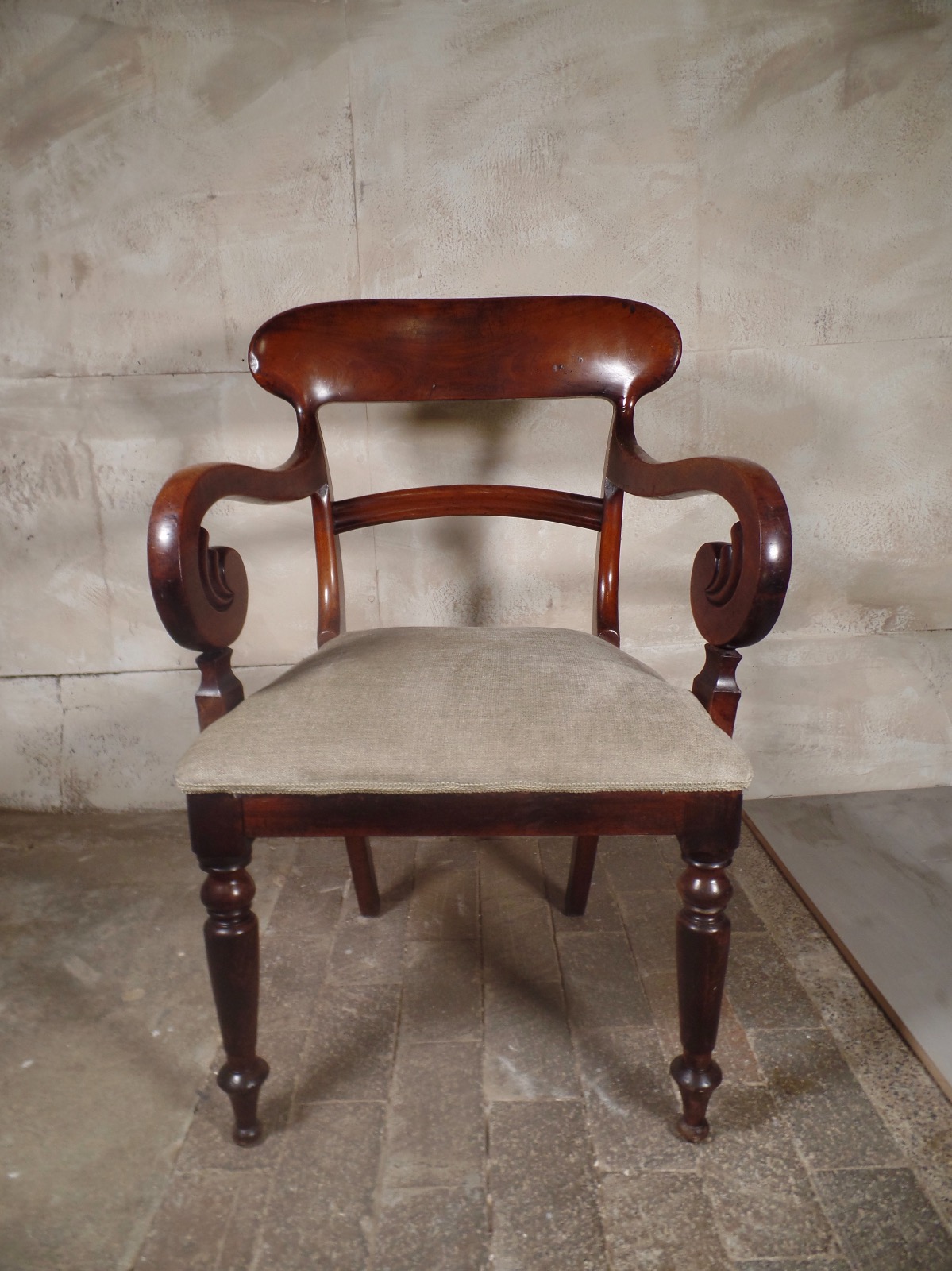 Antique Regency Mahogany Library Desk Elbow Chair Scroll Upholstered (1 of 1)