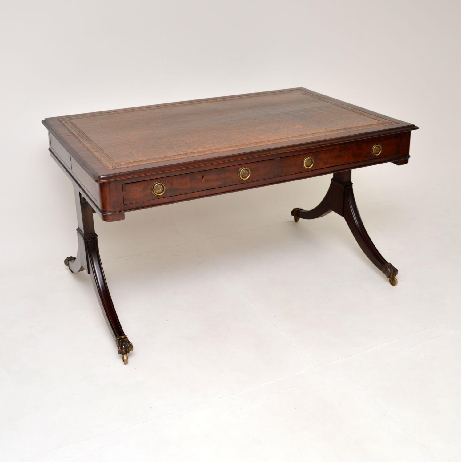 Antique Regency Period Mahogany Leather Top Partners Desk