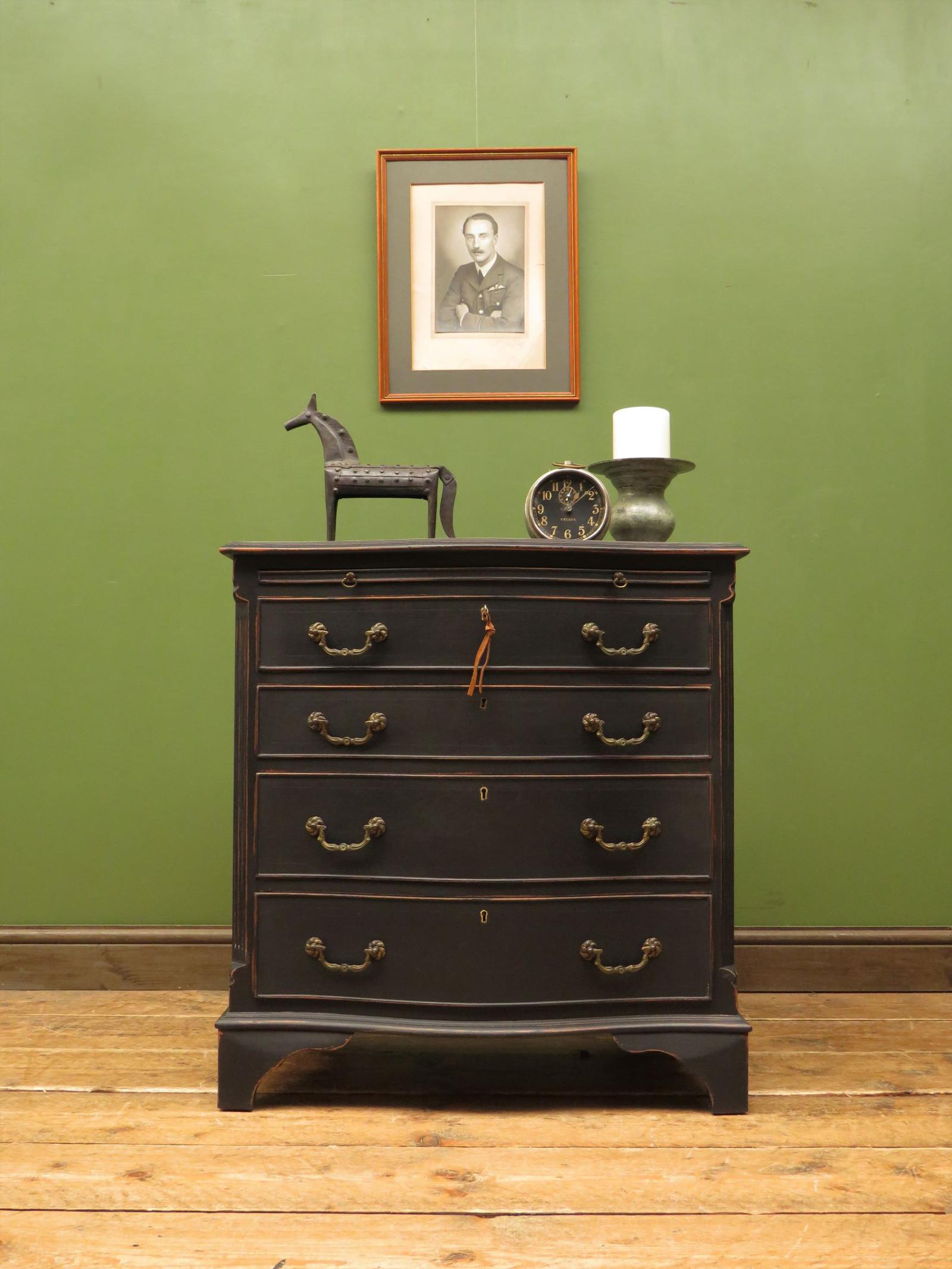 Antique Reproduction Black Painted Chest of Drawers, Lockable Bachelors Chest