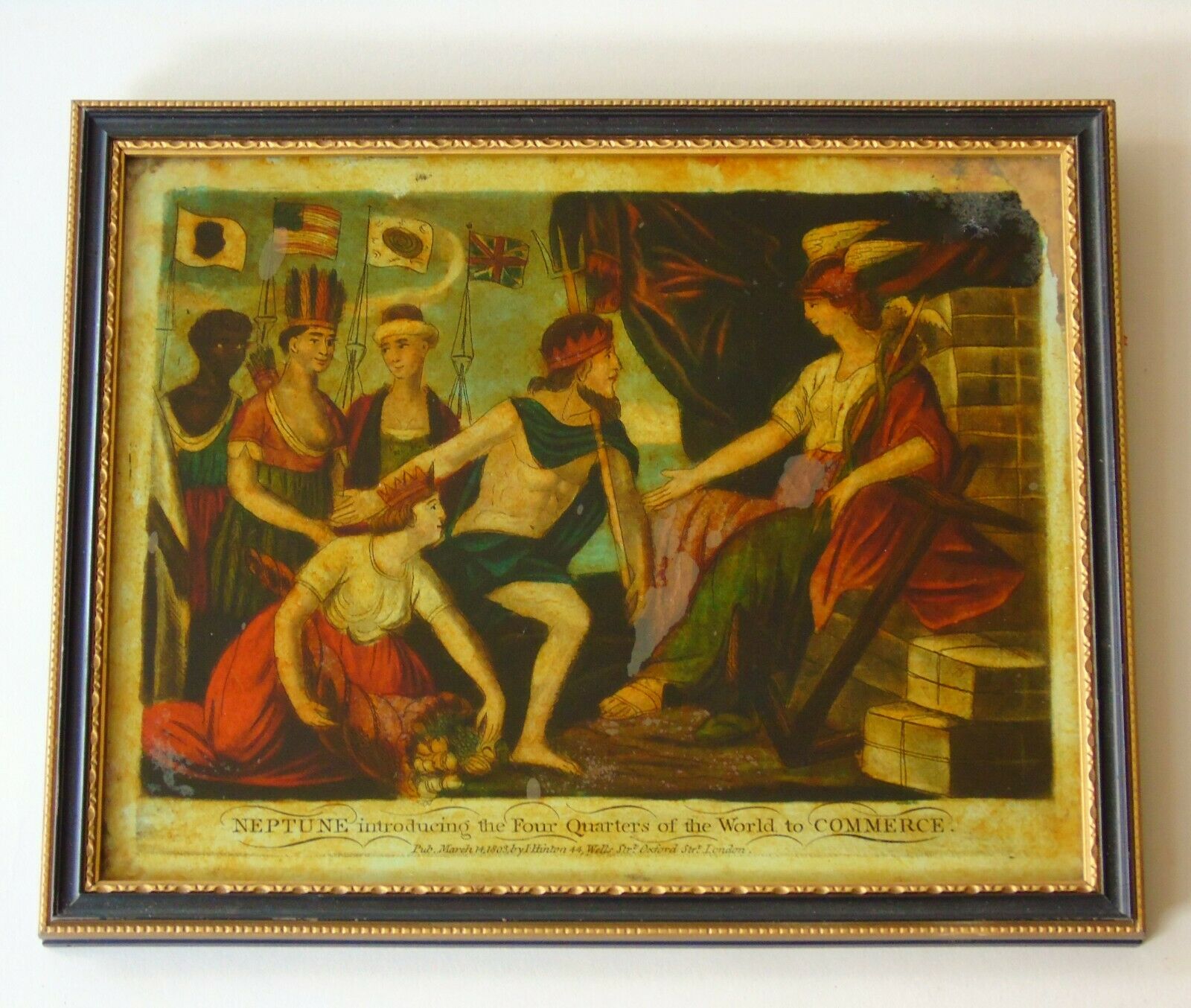 Antique Reverse Painting on Glass Early 19th Century Neptune (1 of 1)