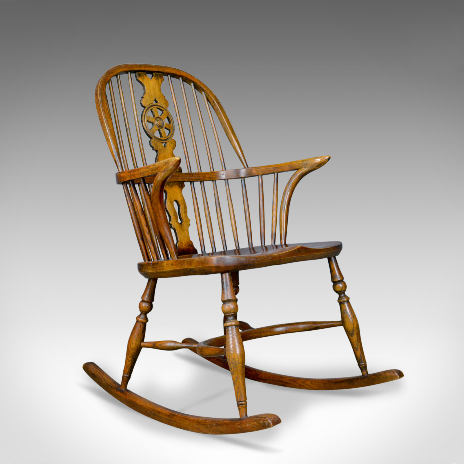 Antique Rocking Chair, English, Edwardian, Windsor Stick Back, Elbow c.1910