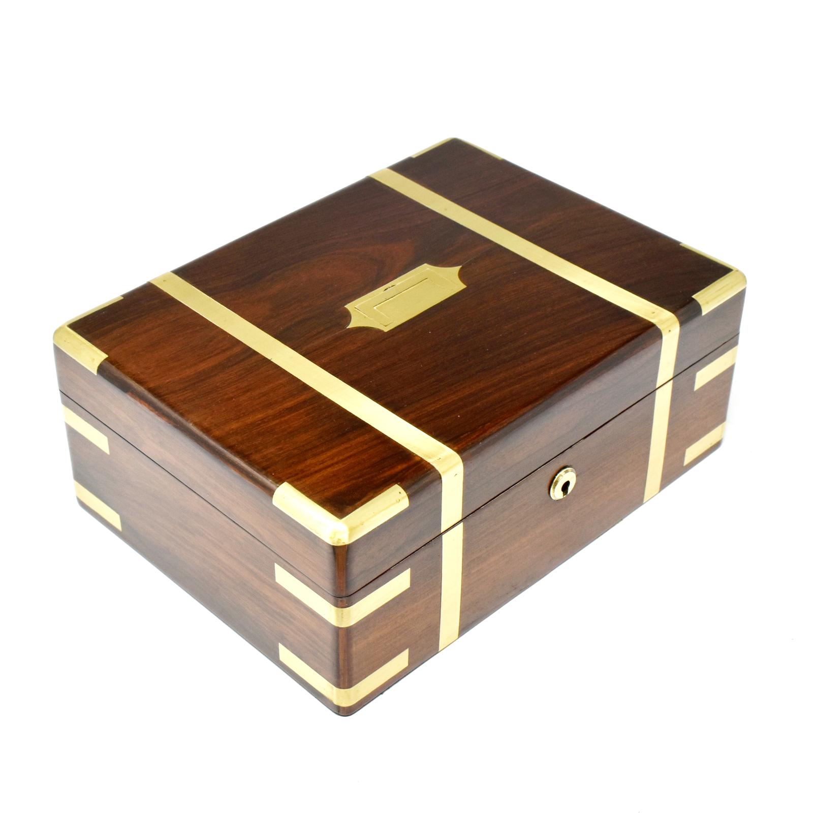 Antique Rosewood and Brass Inlaid Jewellery Box