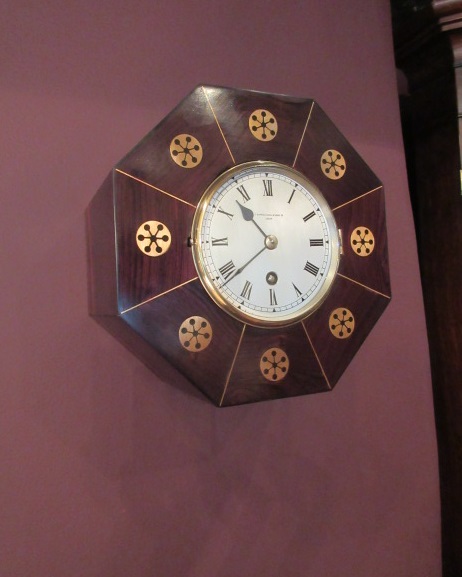 Antique Rosewood Brass Inlaid Library Wall Clock
