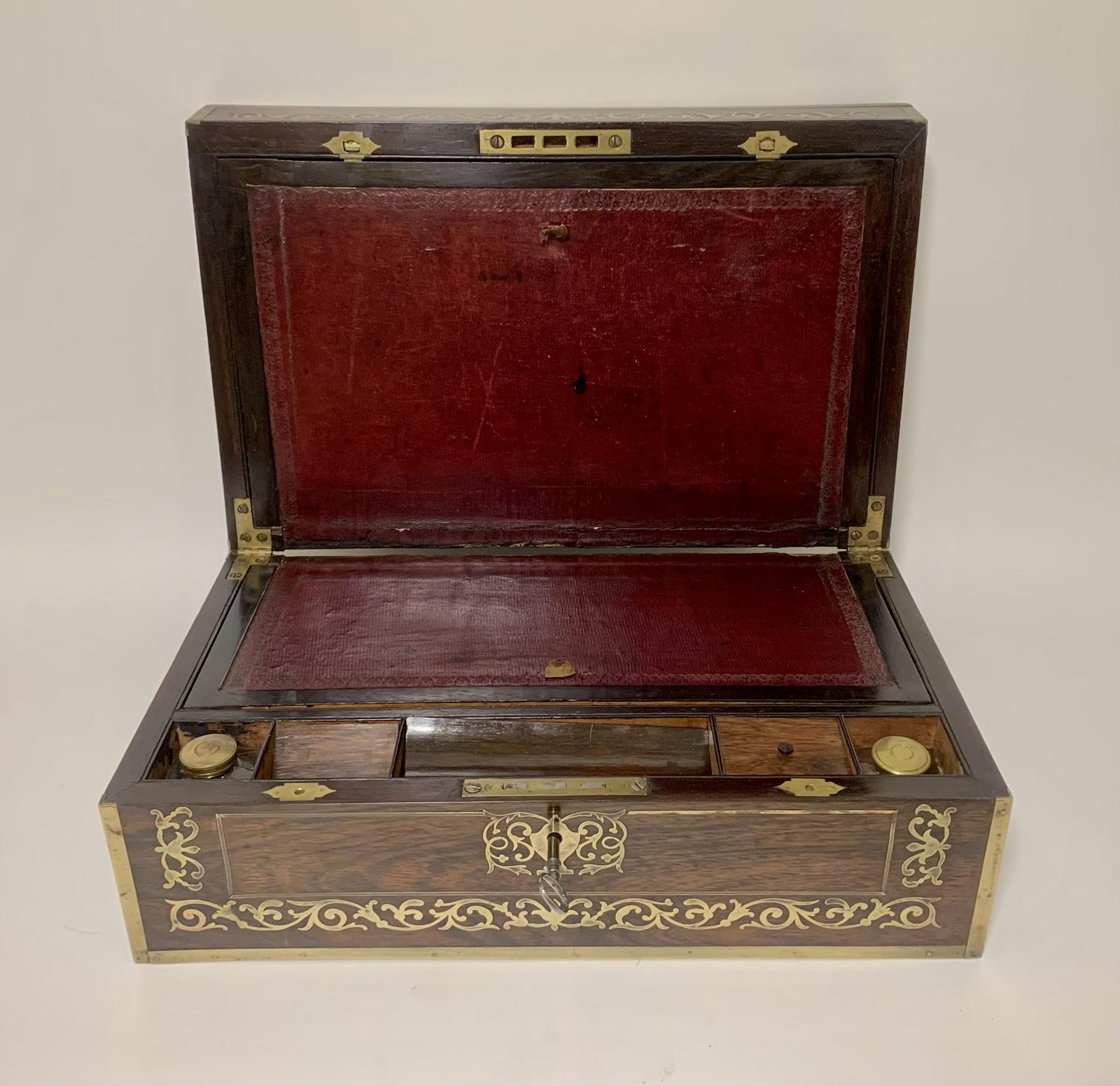 Antique Rosewood Brass Inlaid Writing Slope Box (1 of 15)