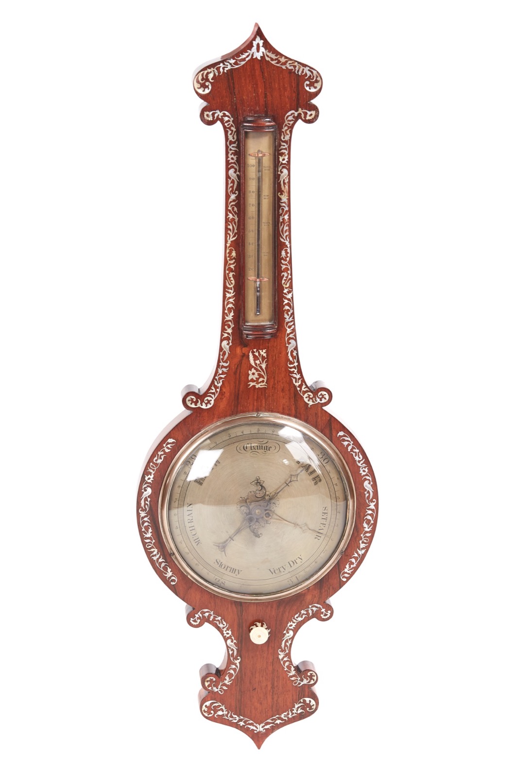 Antique Rosewood Inlaid Mother of Pearl Banjo Barometer
