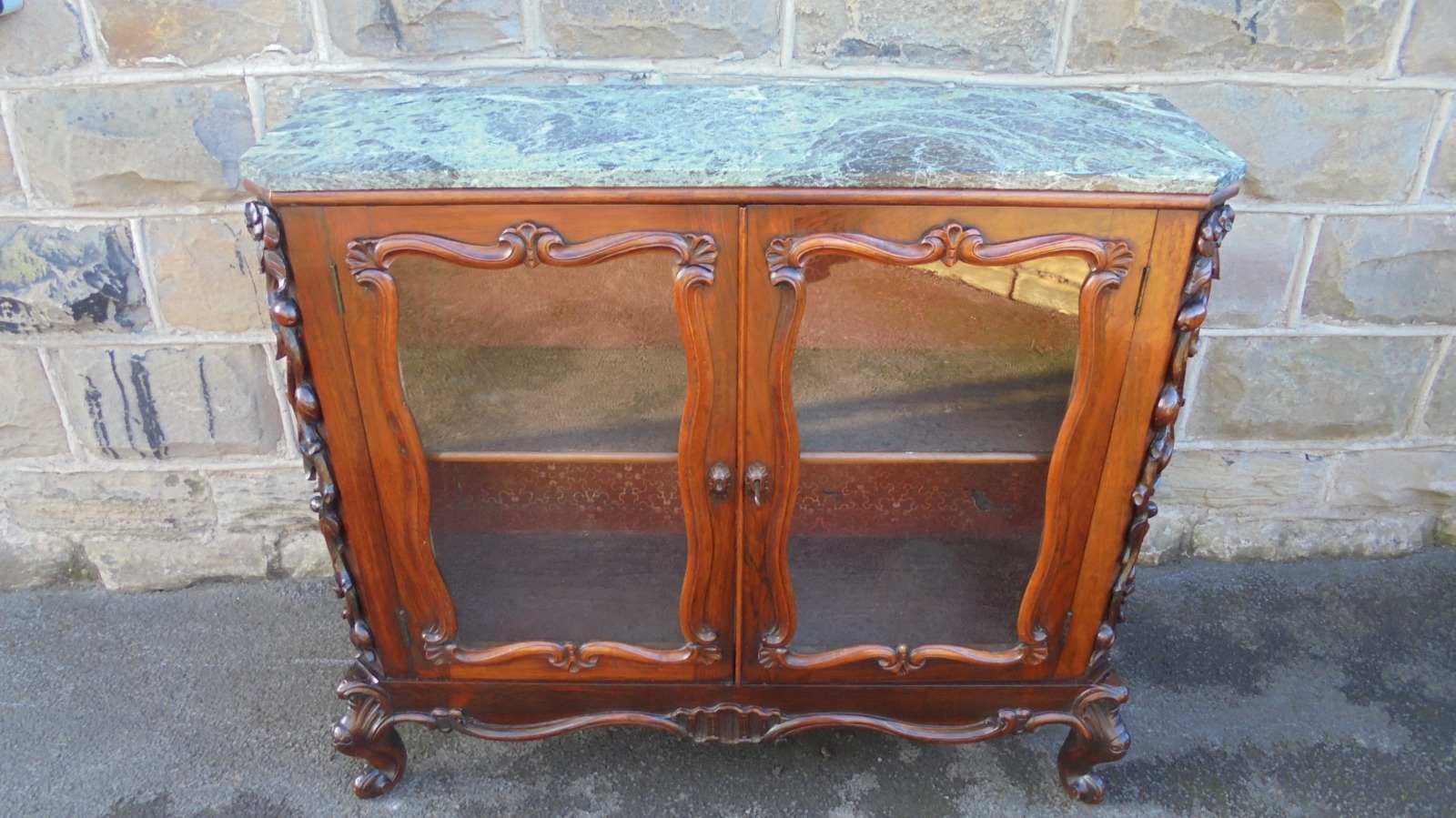 Antique Rosewood Marble Top Dwarf Side Cabinet