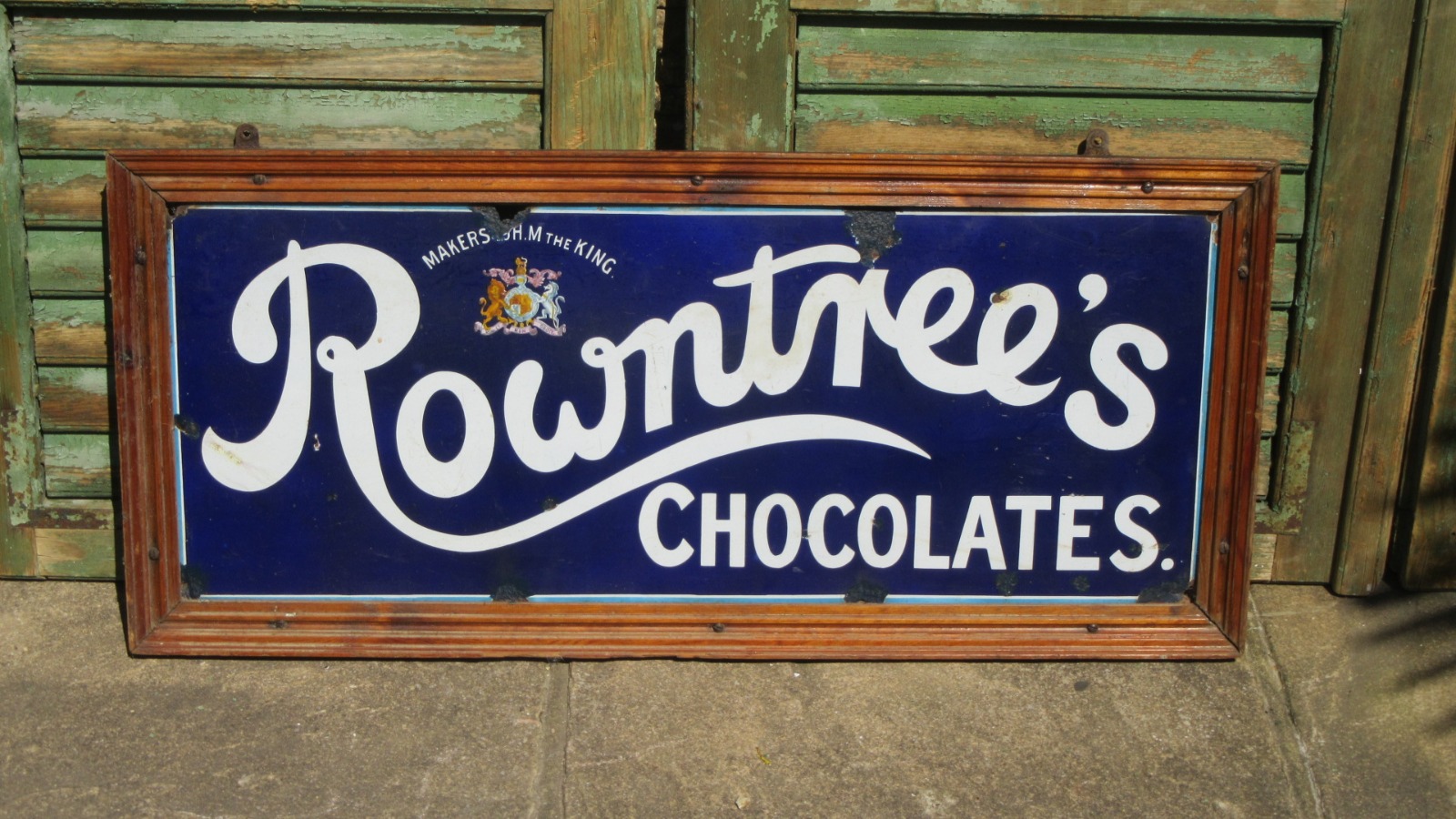 Antique Rowntrees Chocolate Enamel Advertising Sign