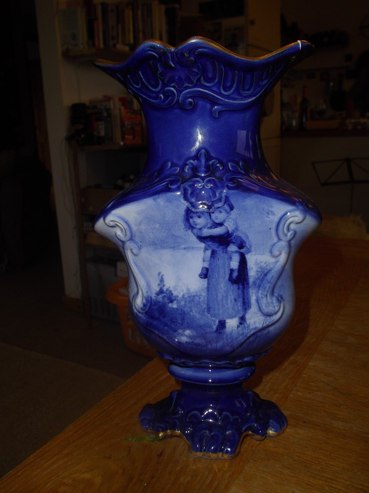 Antique Royal Doulton Blue Children Series Ware Vase Flow Blue, c.1920`s