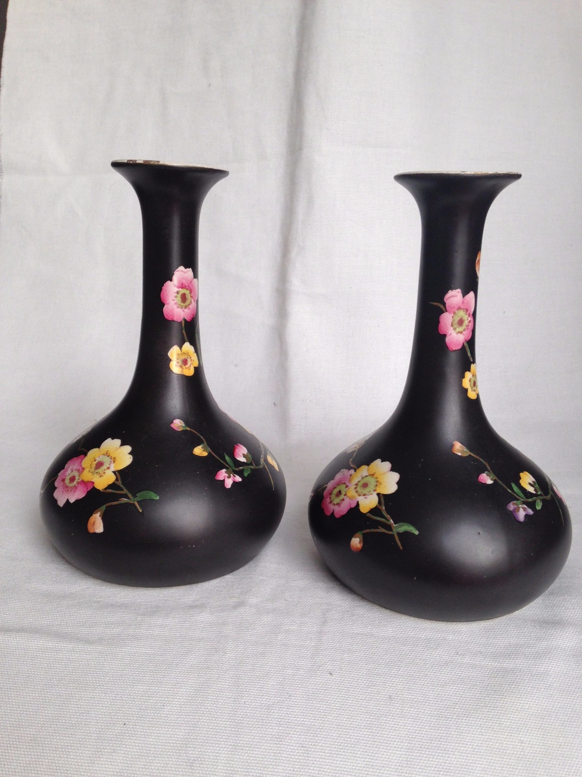 Antique Royal Sydney Ware W. Lowe L, Matching Pair Hand Painted Vases, circa 1915