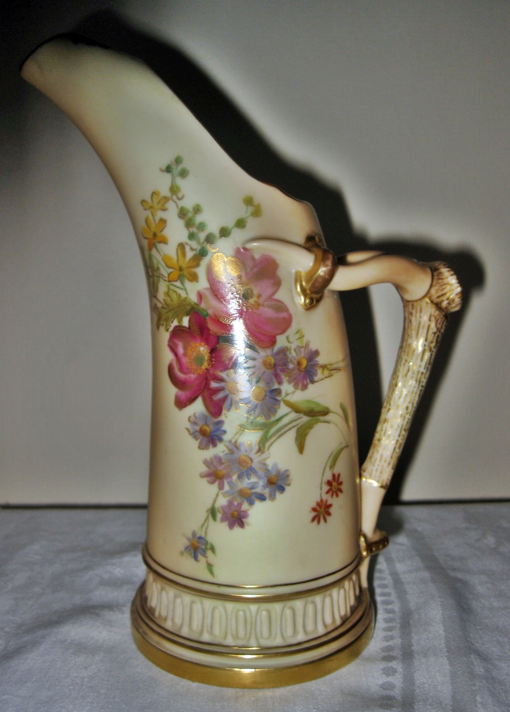 Antique Royal Worcester Blush Ivory Tusk Ice Jug c.1900