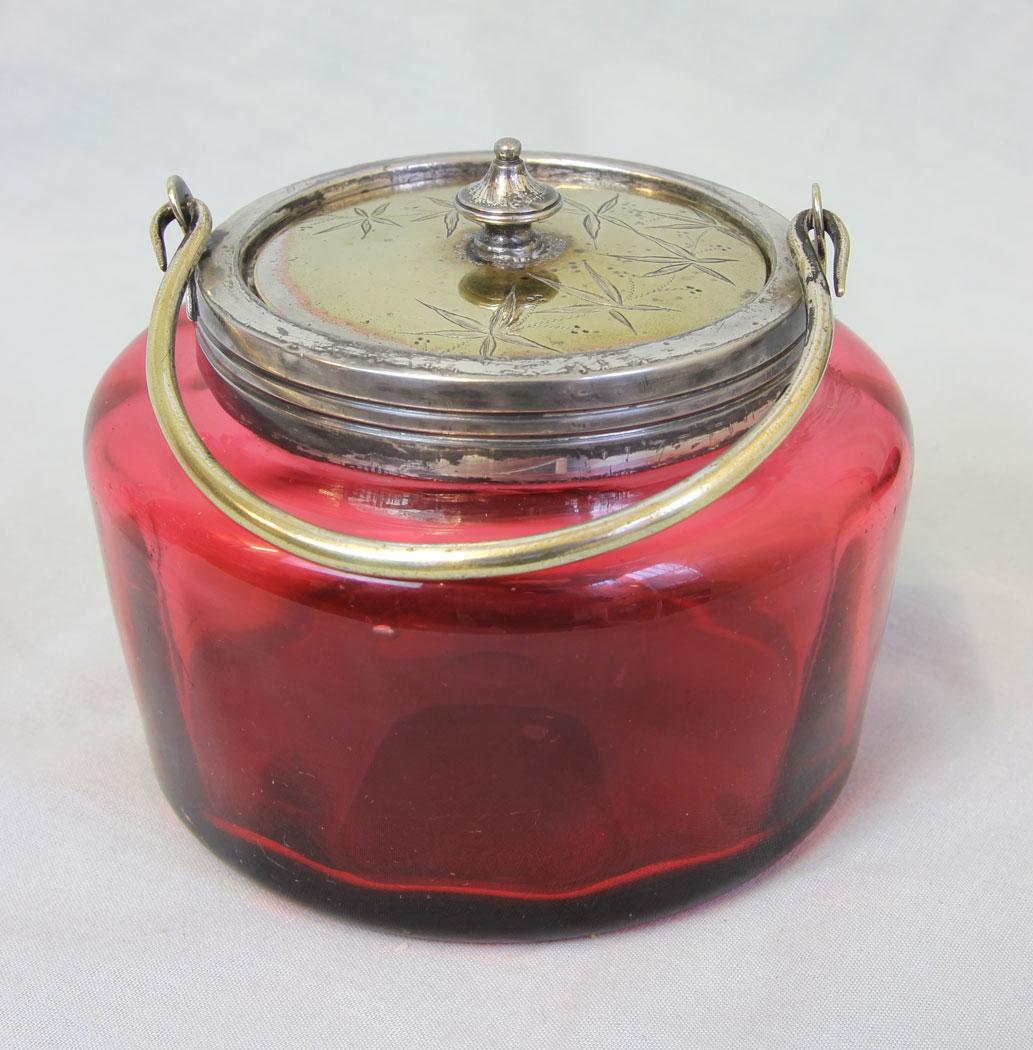 Antique Ruby Cranberry Glass Jam Pot