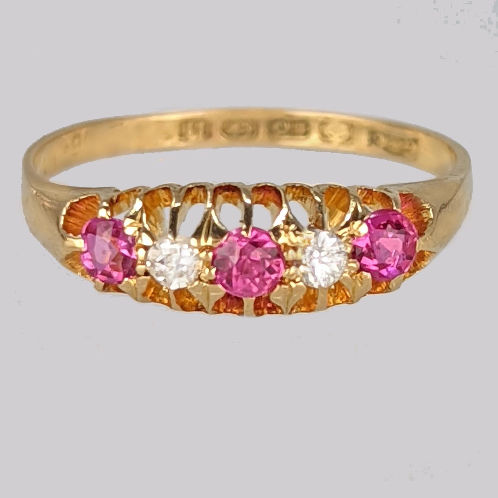 Antique Ruby & Diamond Five Stone Ring 18ct Gold Vintage Ring Birmingham 1912