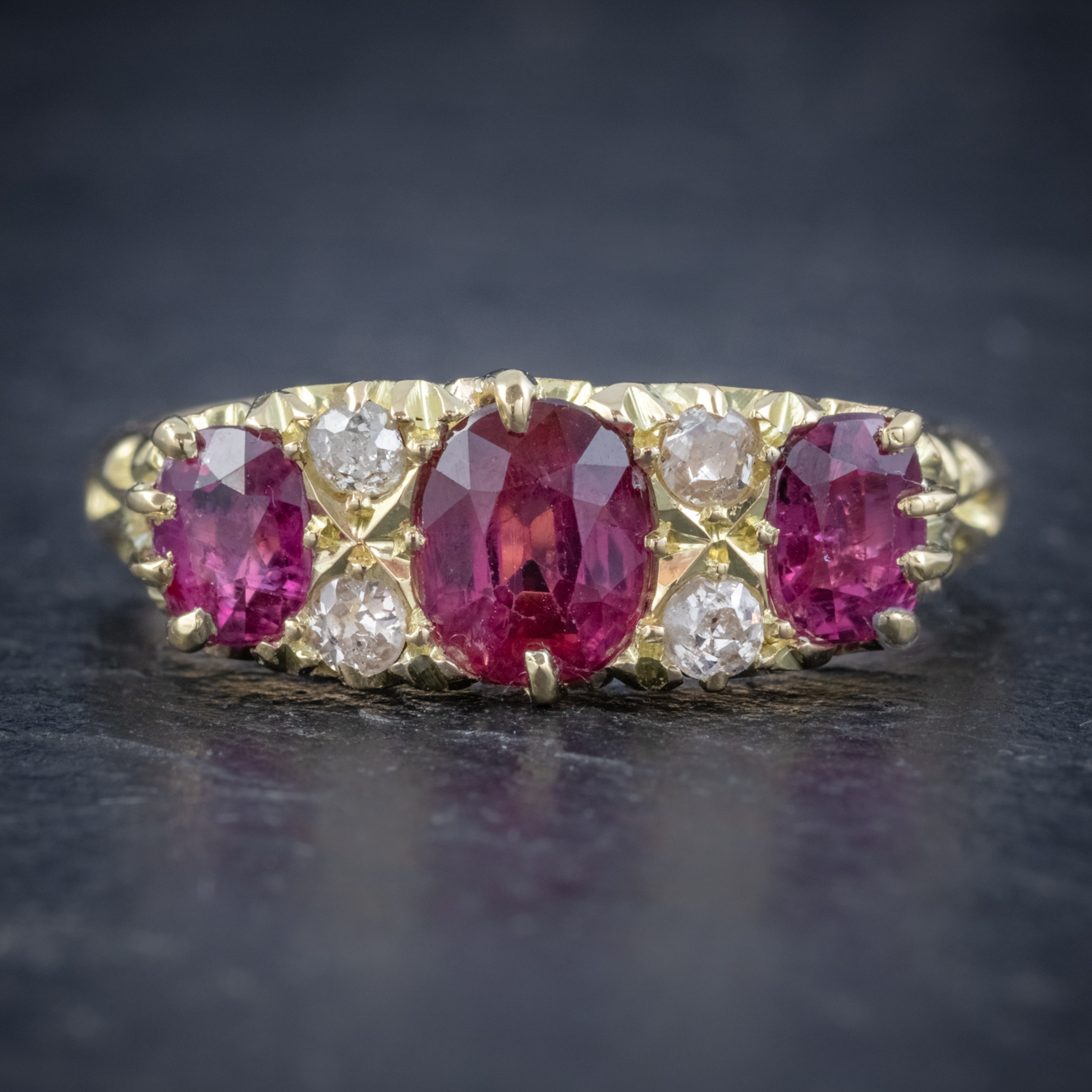 Antique Ruby Diamond Ring 18ct Gold 1.45ct Rubies Dated 1915