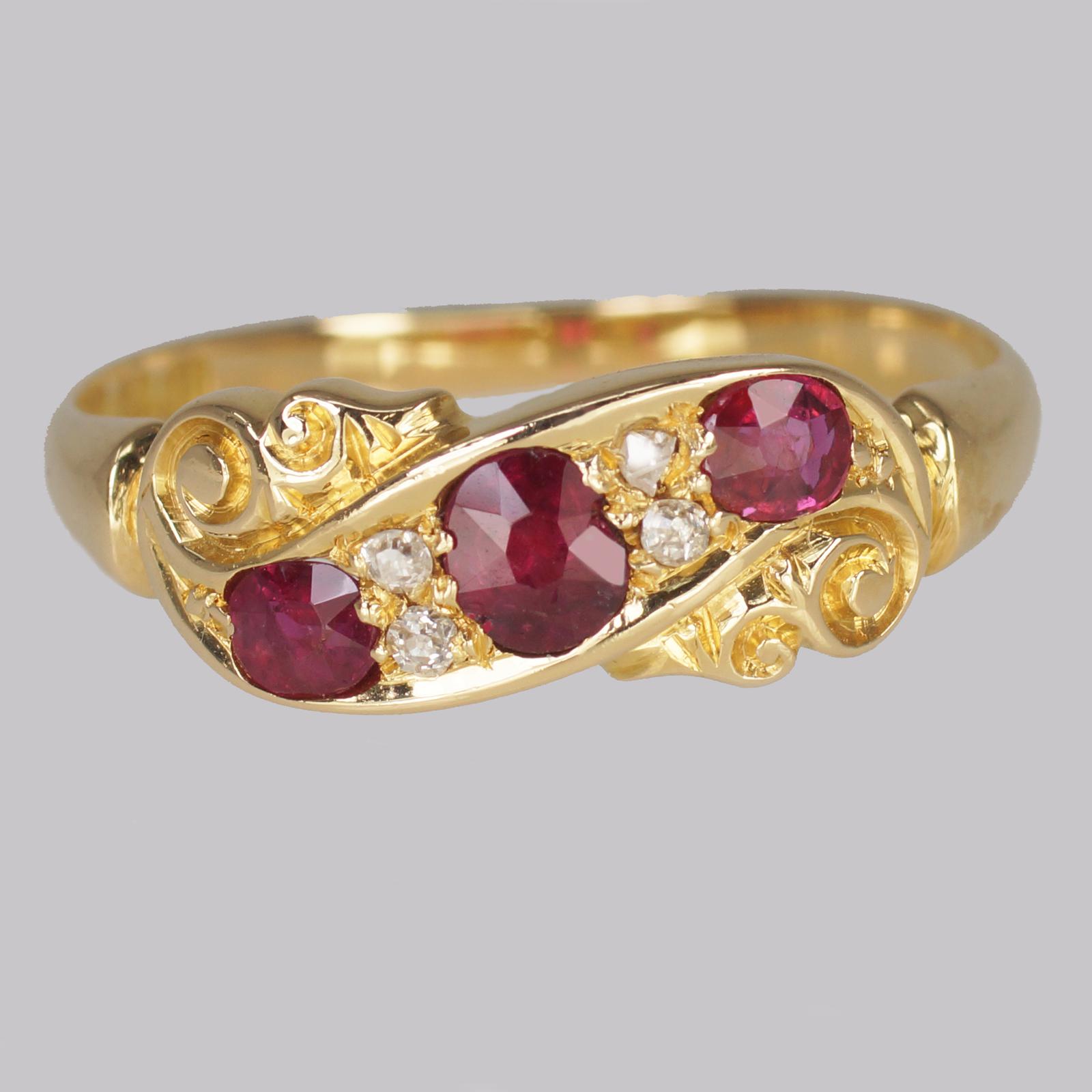Antique Ruby & Diamond Ring 18ct Gold Edwardian Ring Hallmarked Birmingham 1903