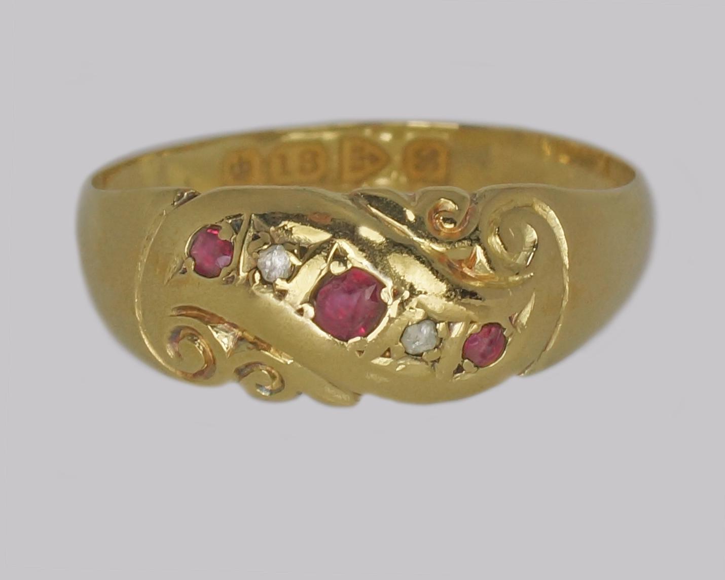 Antique Ruby & Diamond Ring 18ct Gold Edwardian Ring Hallmarked Chester 1902