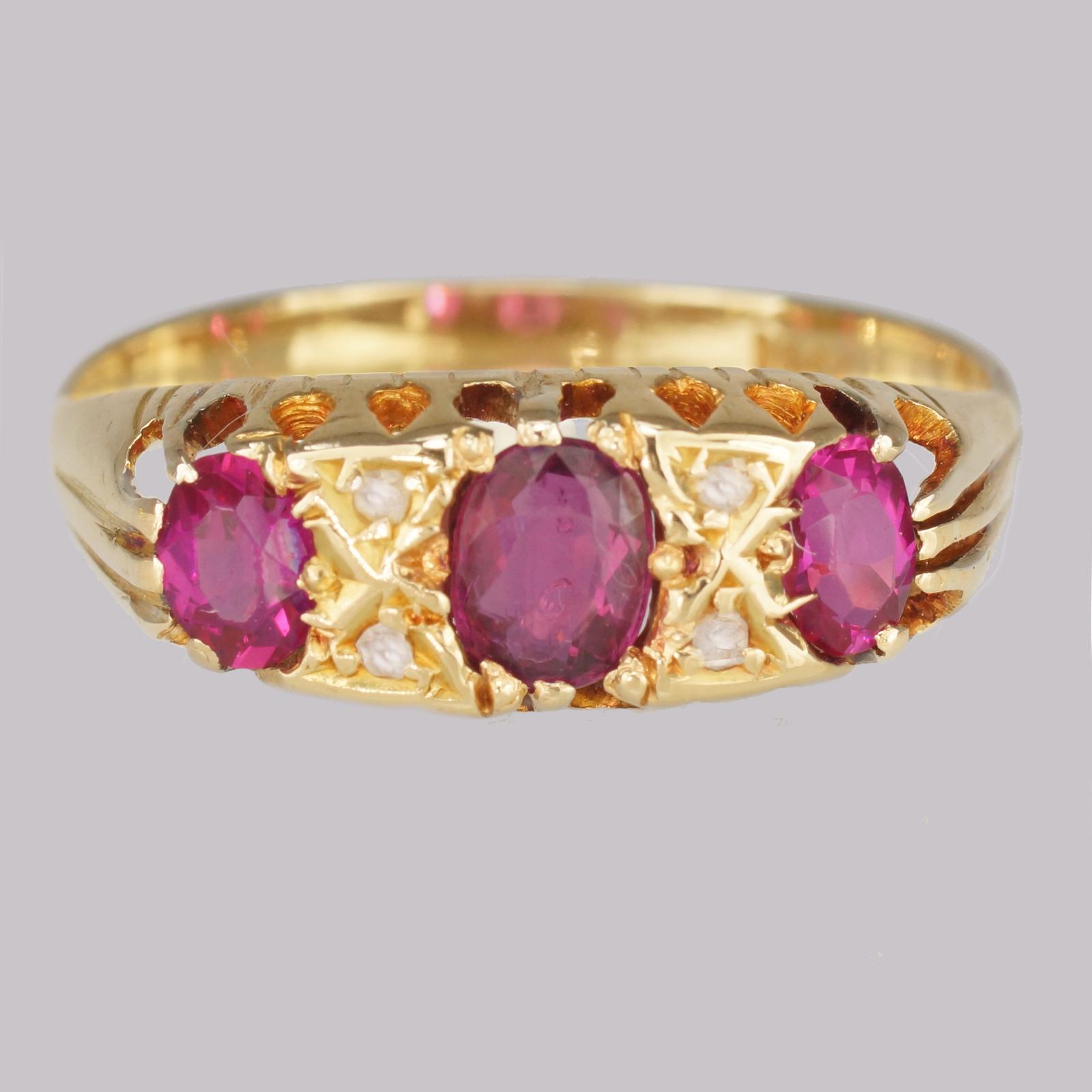 Antique Ruby & Diamond Ring Victorian 18ct Gold Diamond Ruby Trilogy Ring c.1900 (1 of 11)